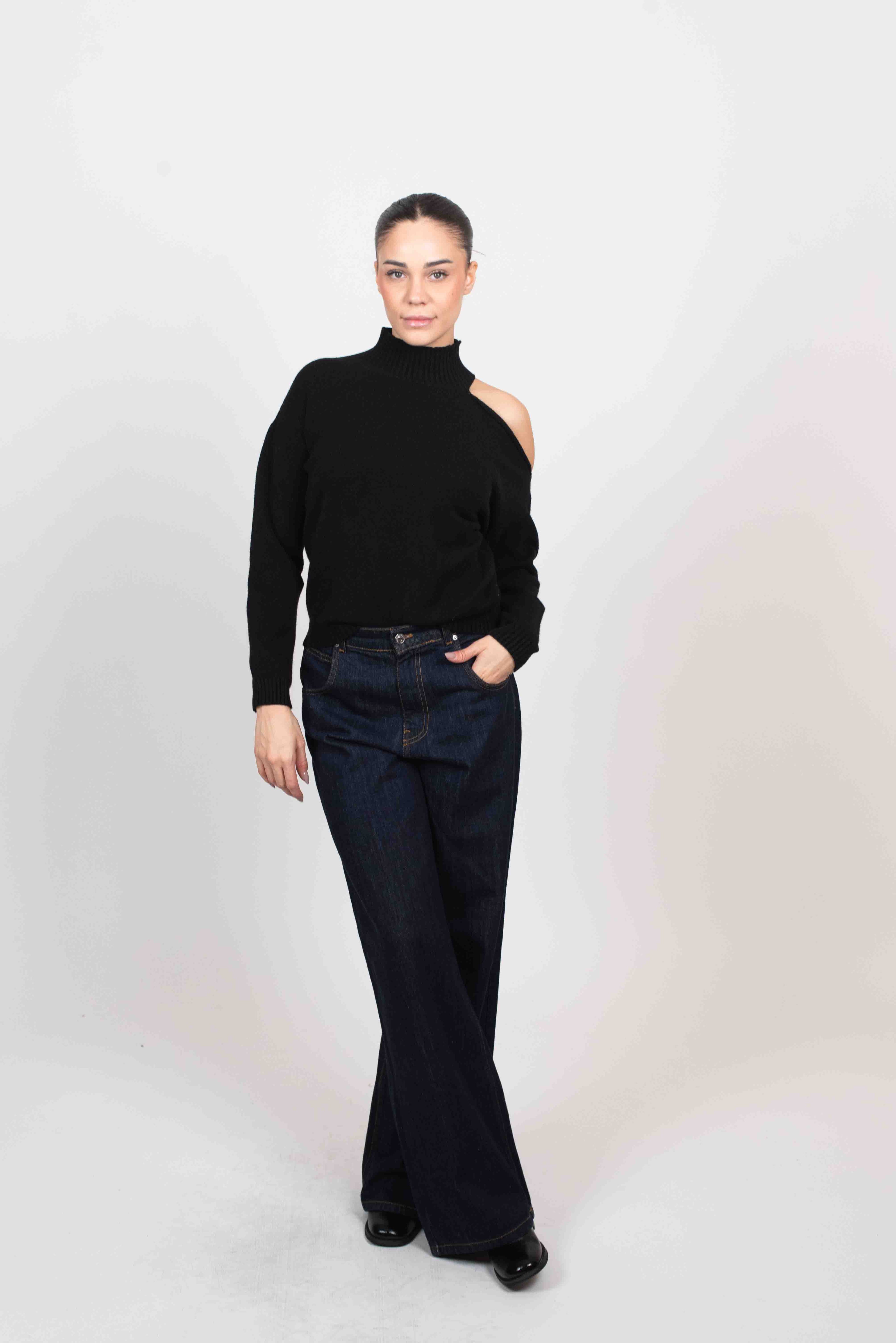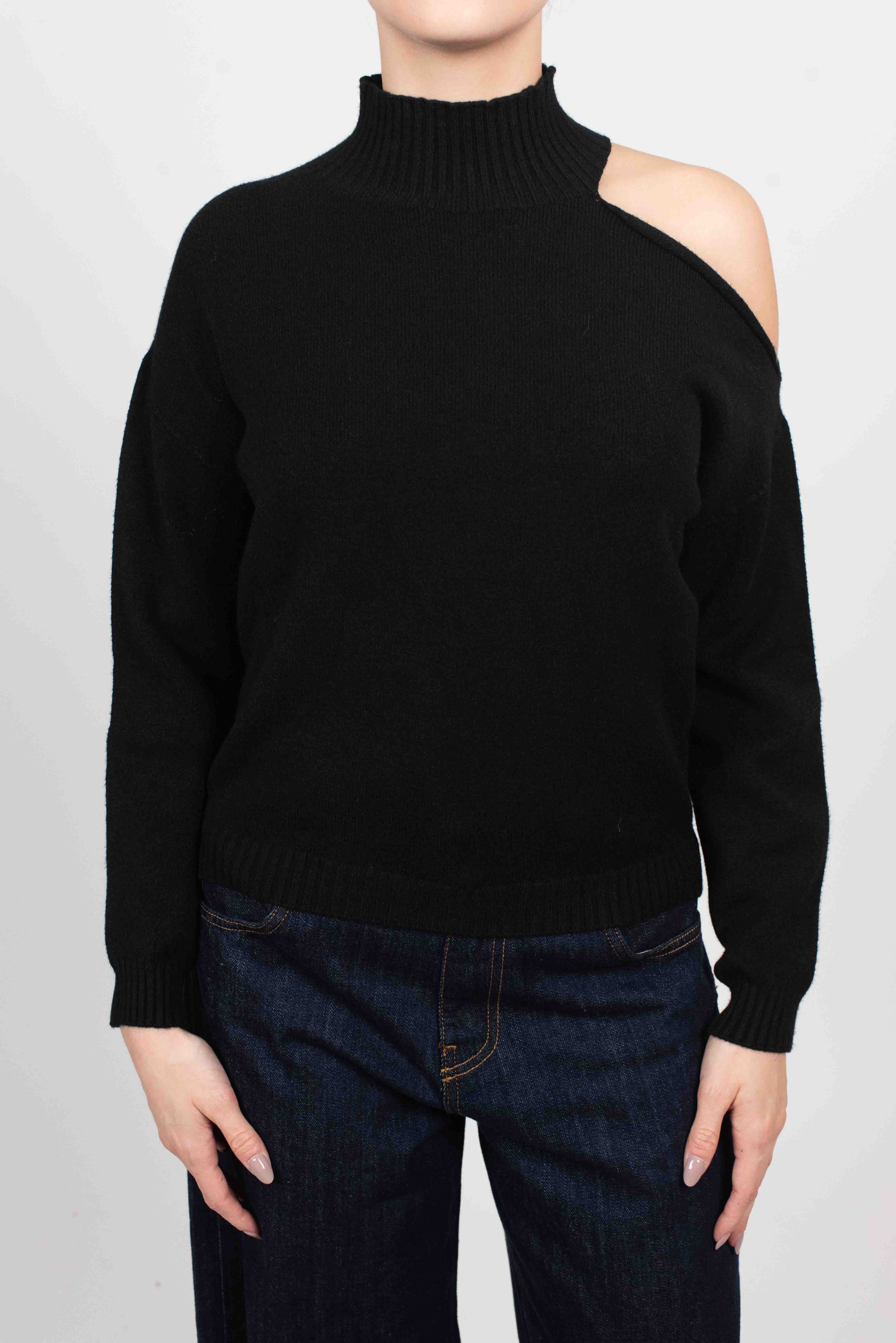 Vicolo Maglia Cut Out Sulla Spalla - NERO