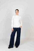 Maglia girocollo con cannolè sul polsino collo e vita.