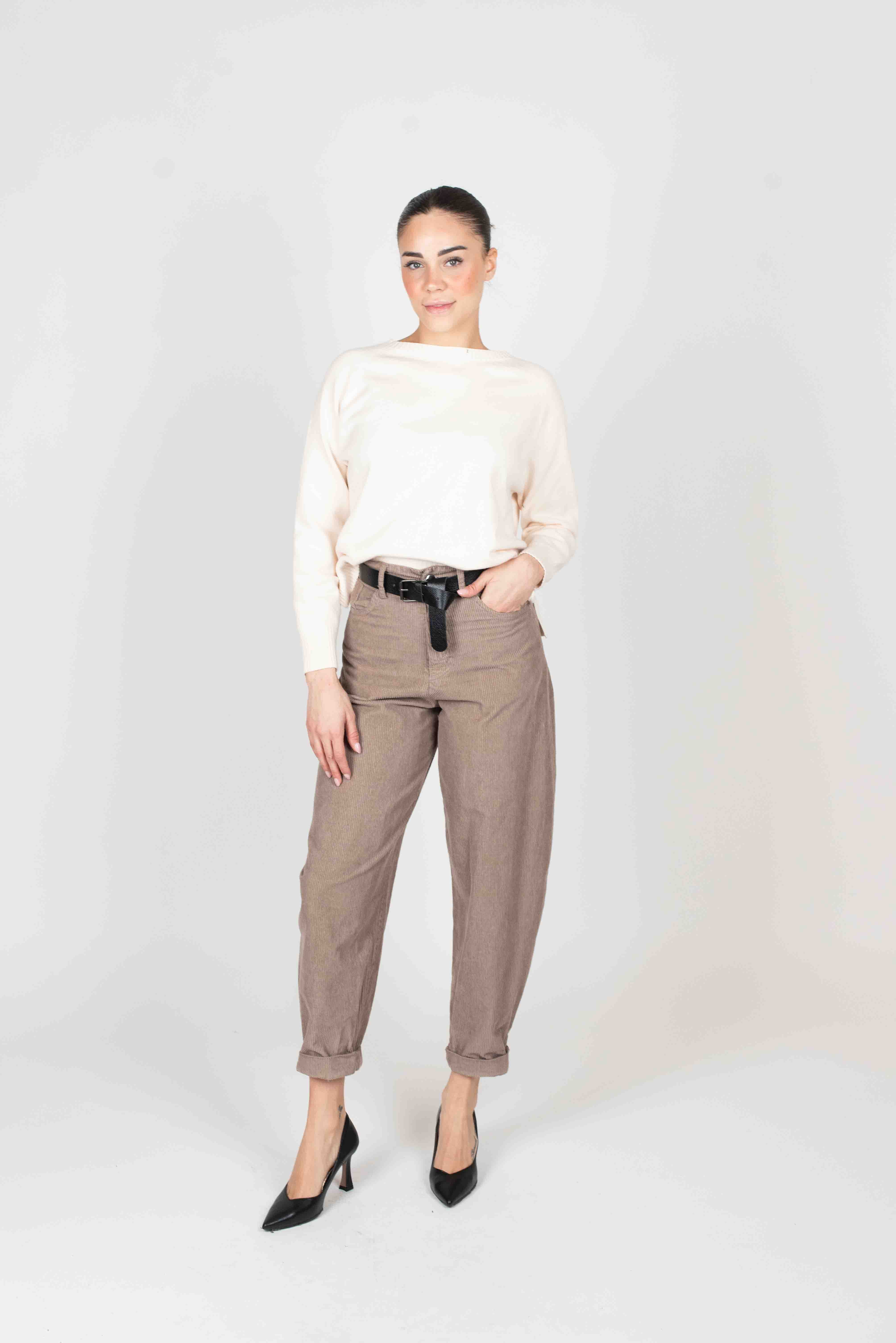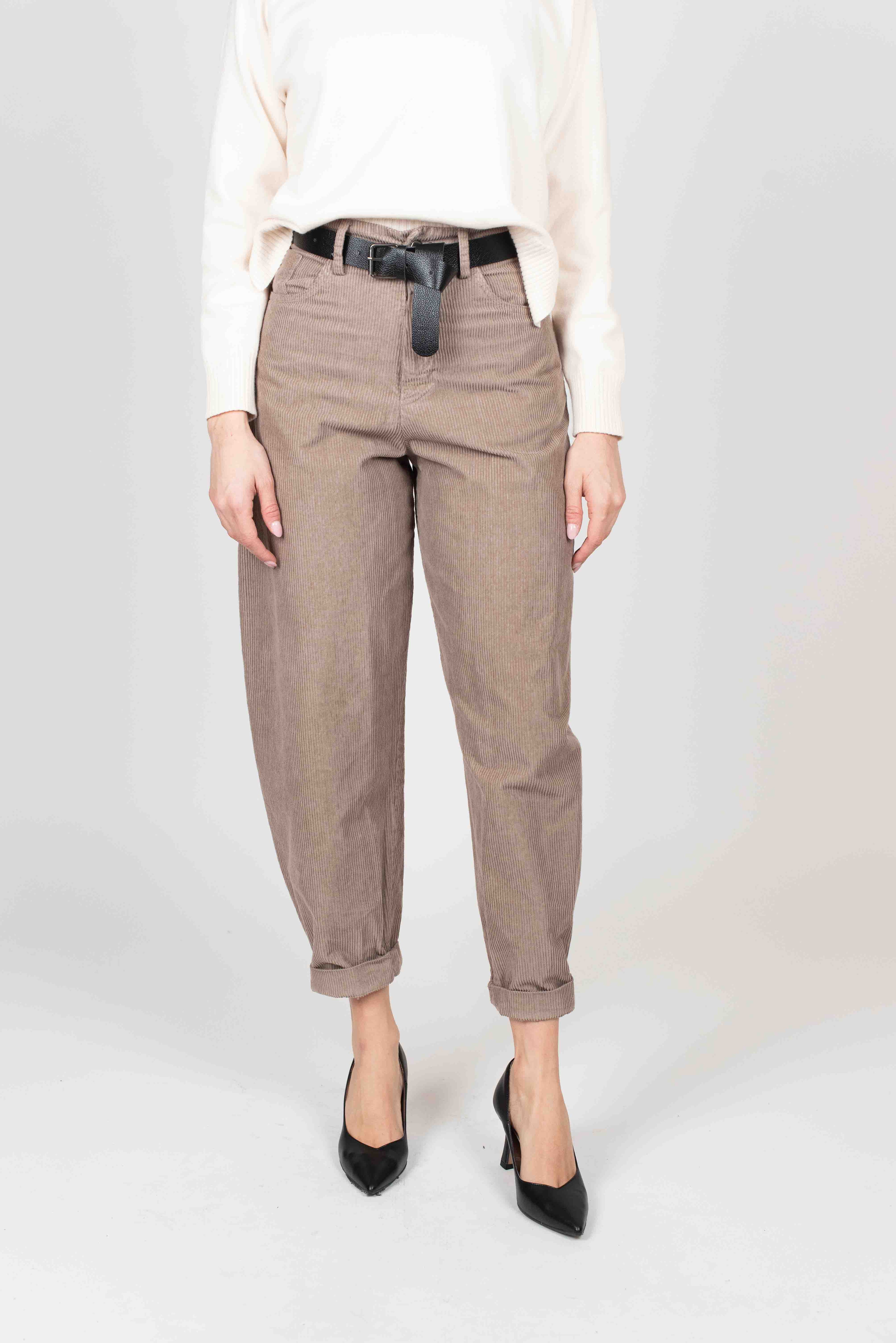 Susy Mix Pantalone Barrel Velluto - FANGO