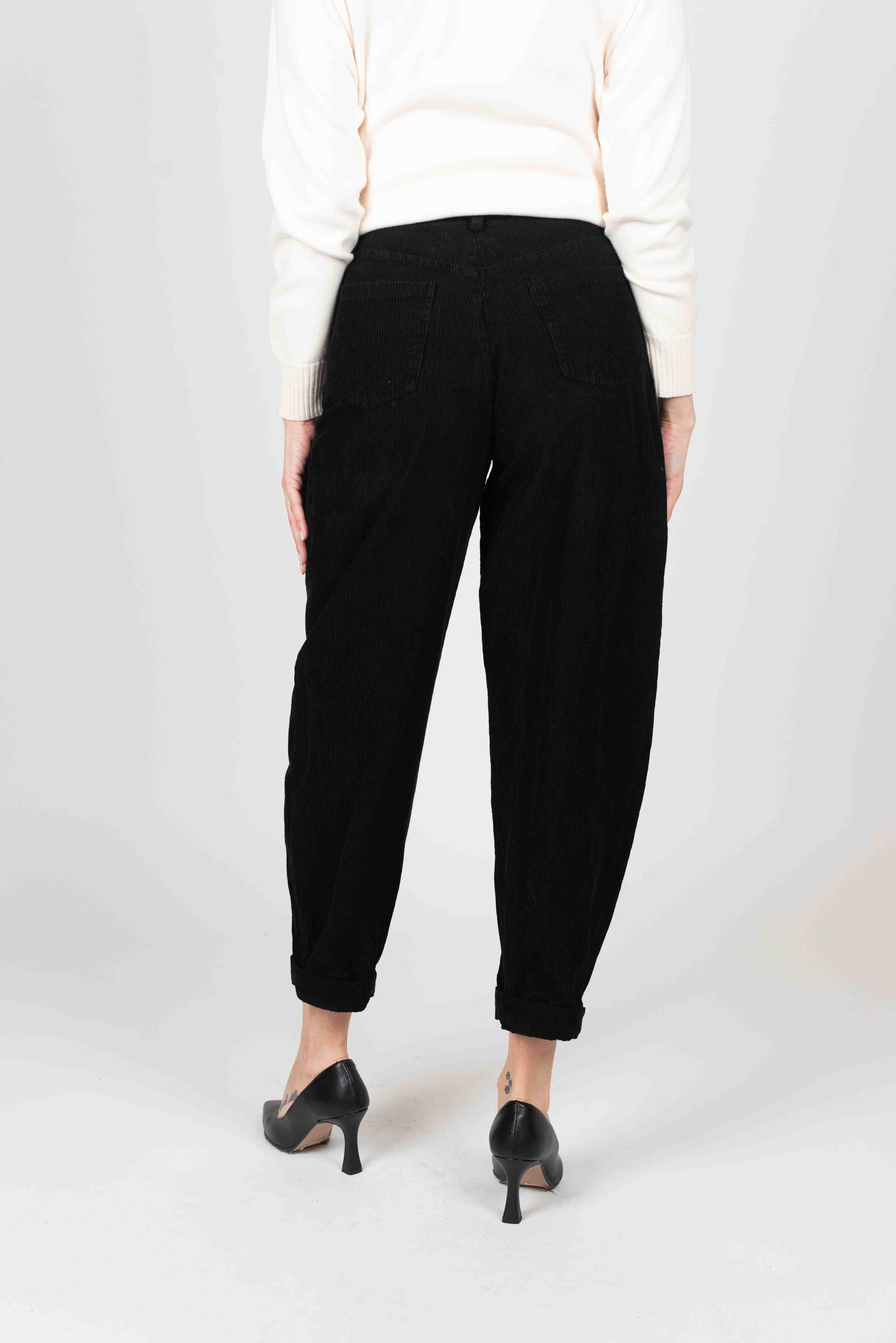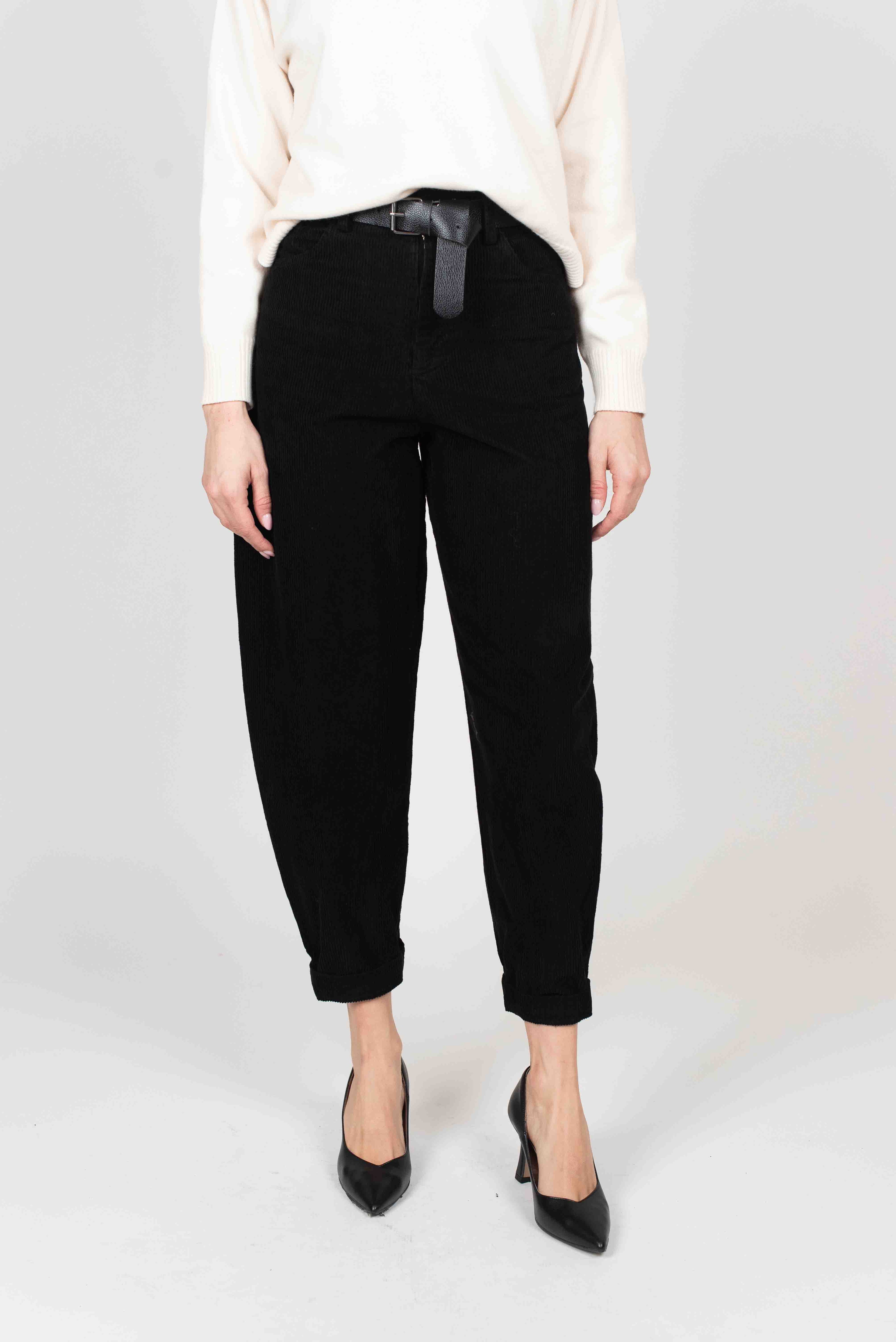 Susy Mix Pantalone Barrel Velluto - NERO