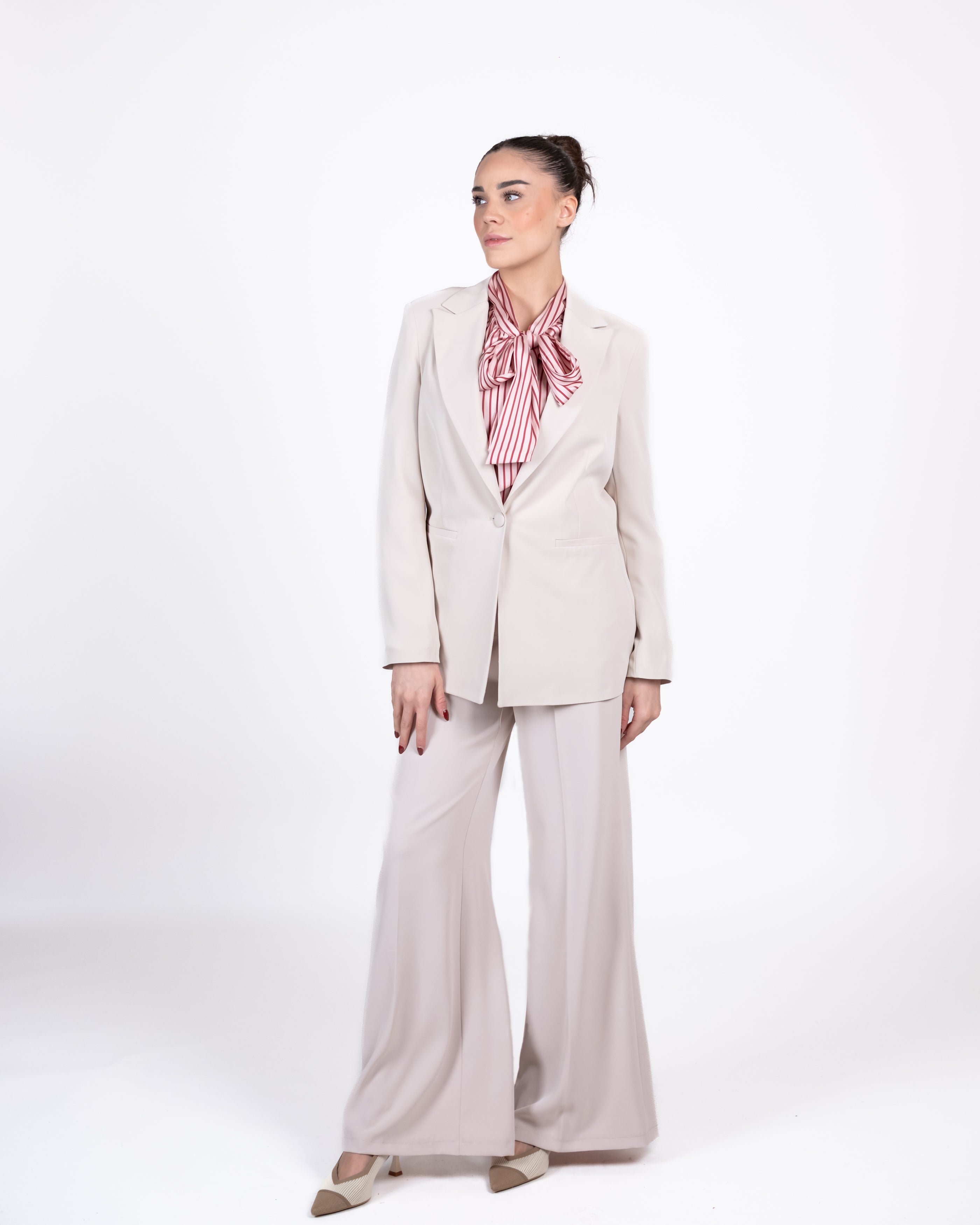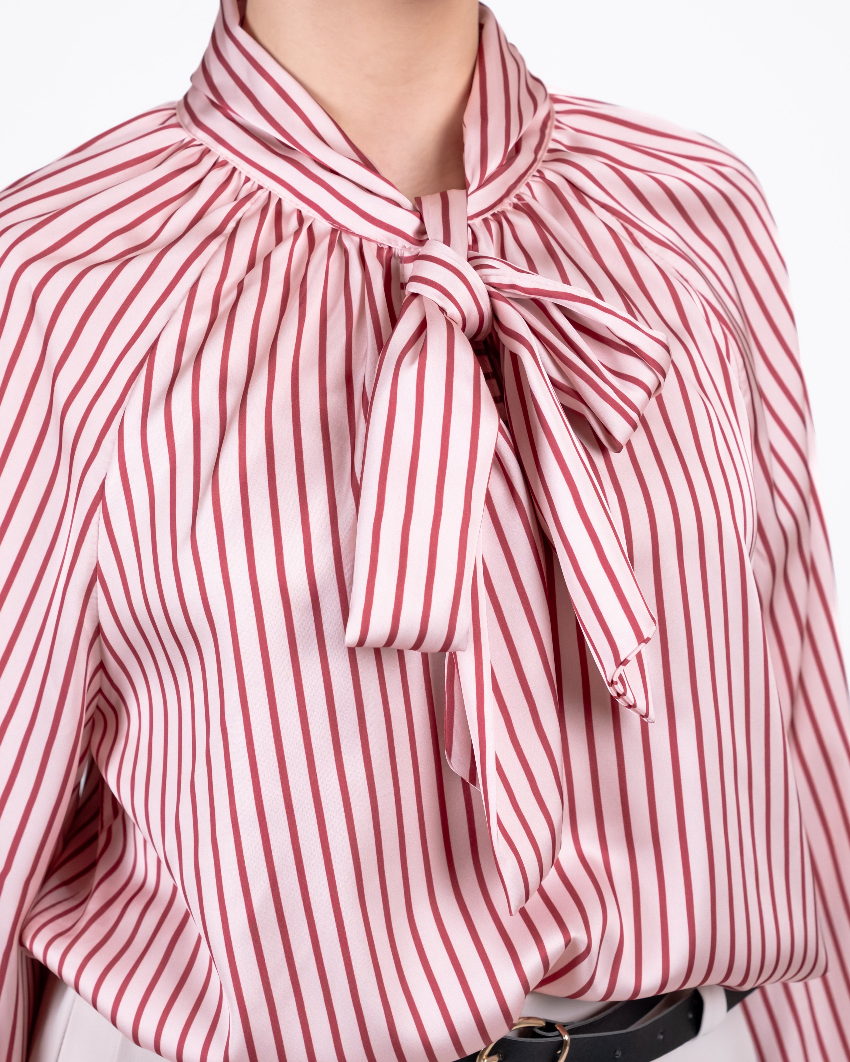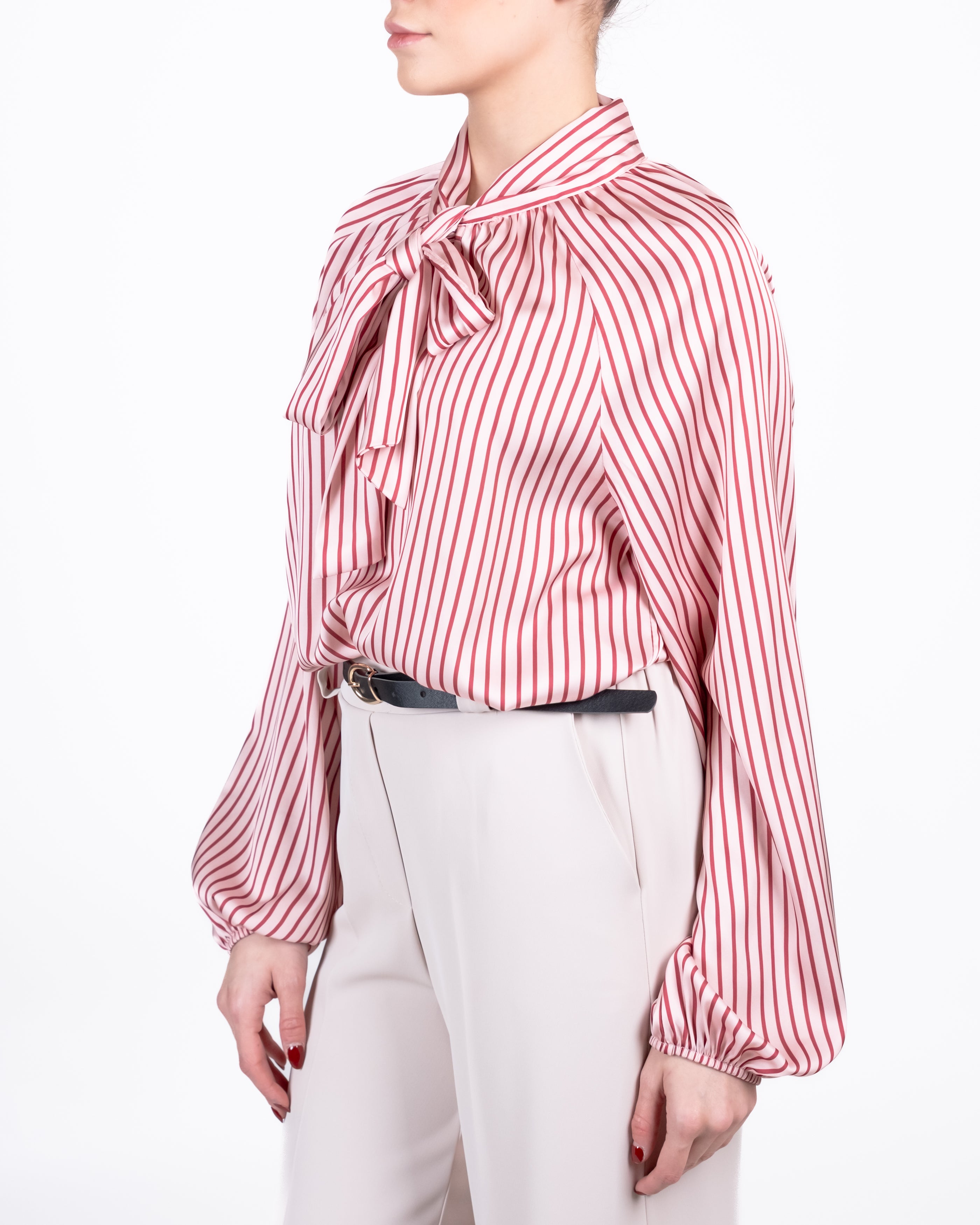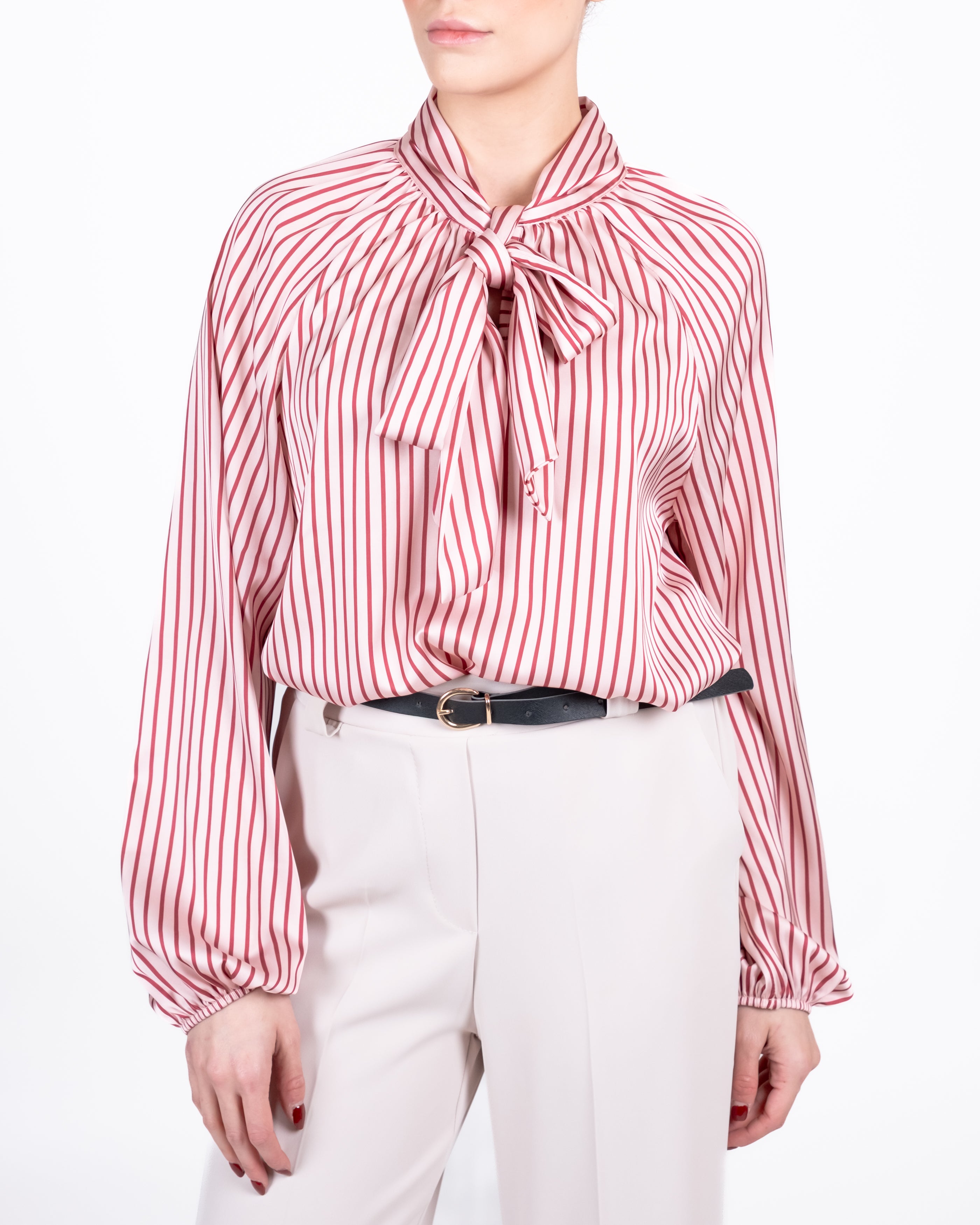 Blusa a righe in contrasto con fiocco sul collo ed elastico sul polsino.