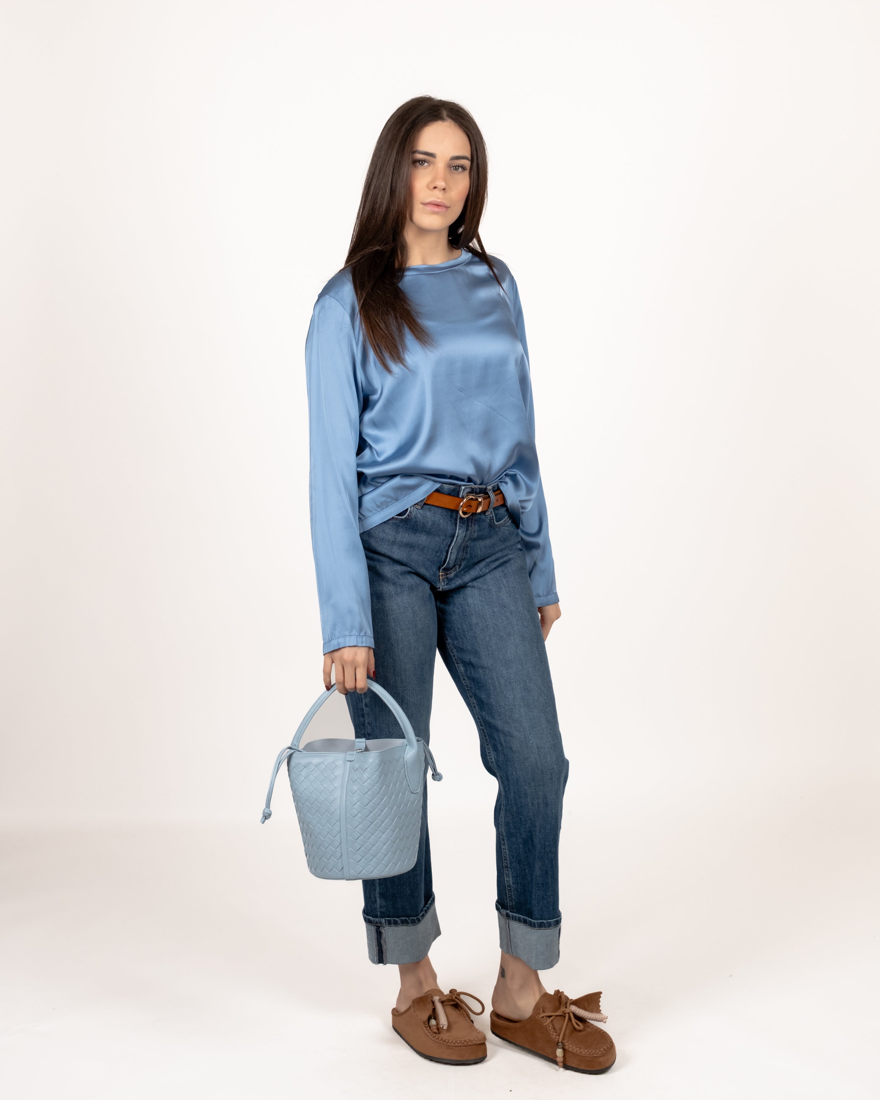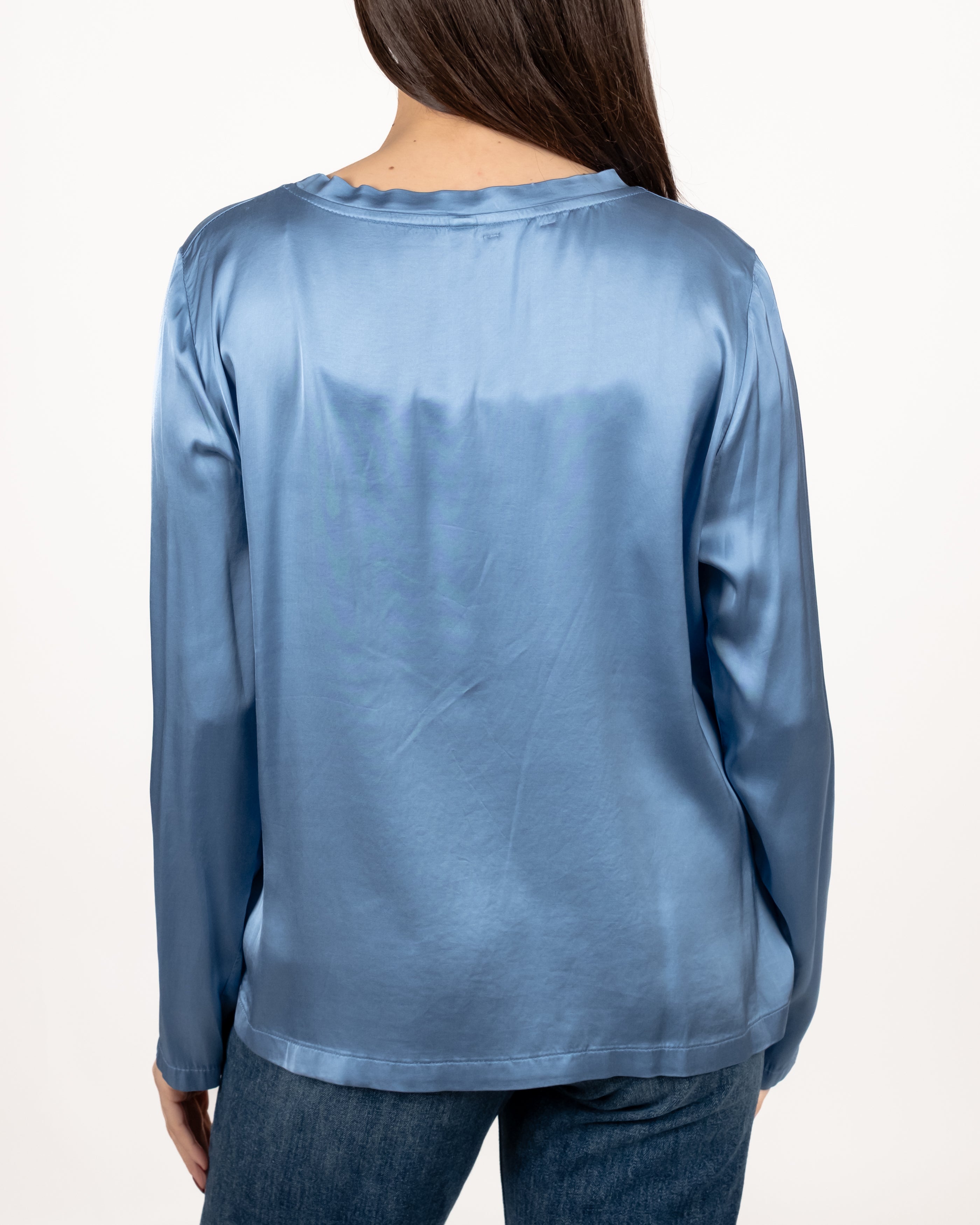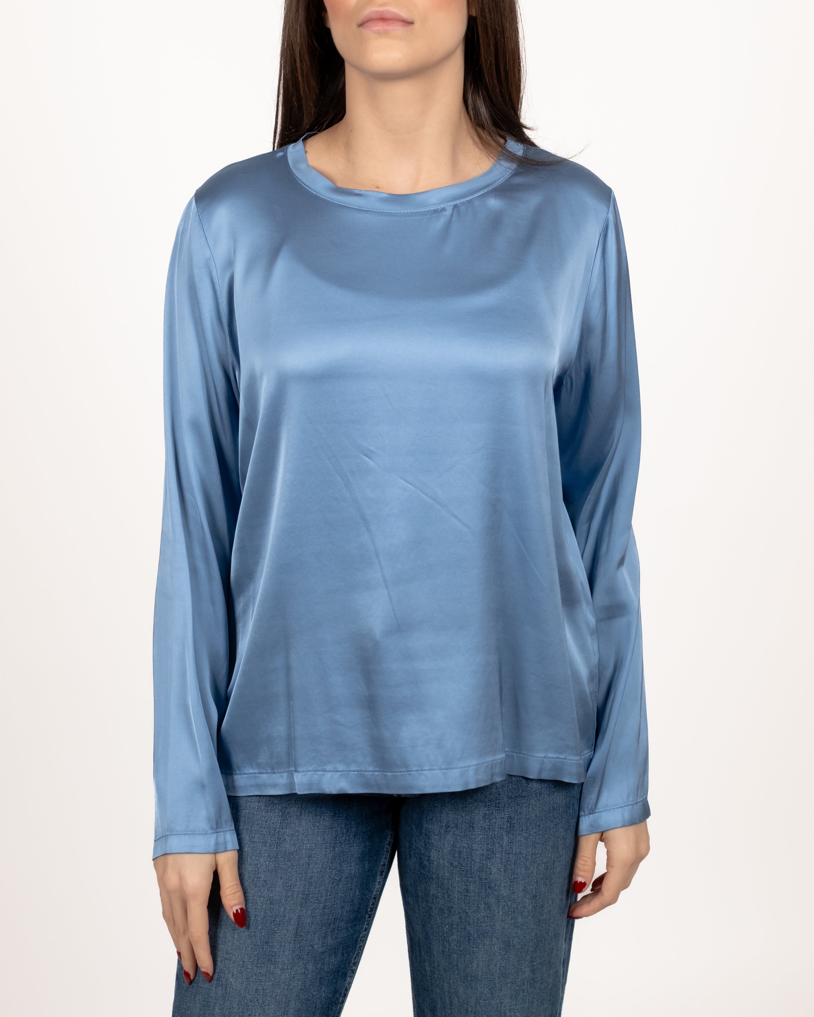 T Shirt in raso girocollo manica lunga.