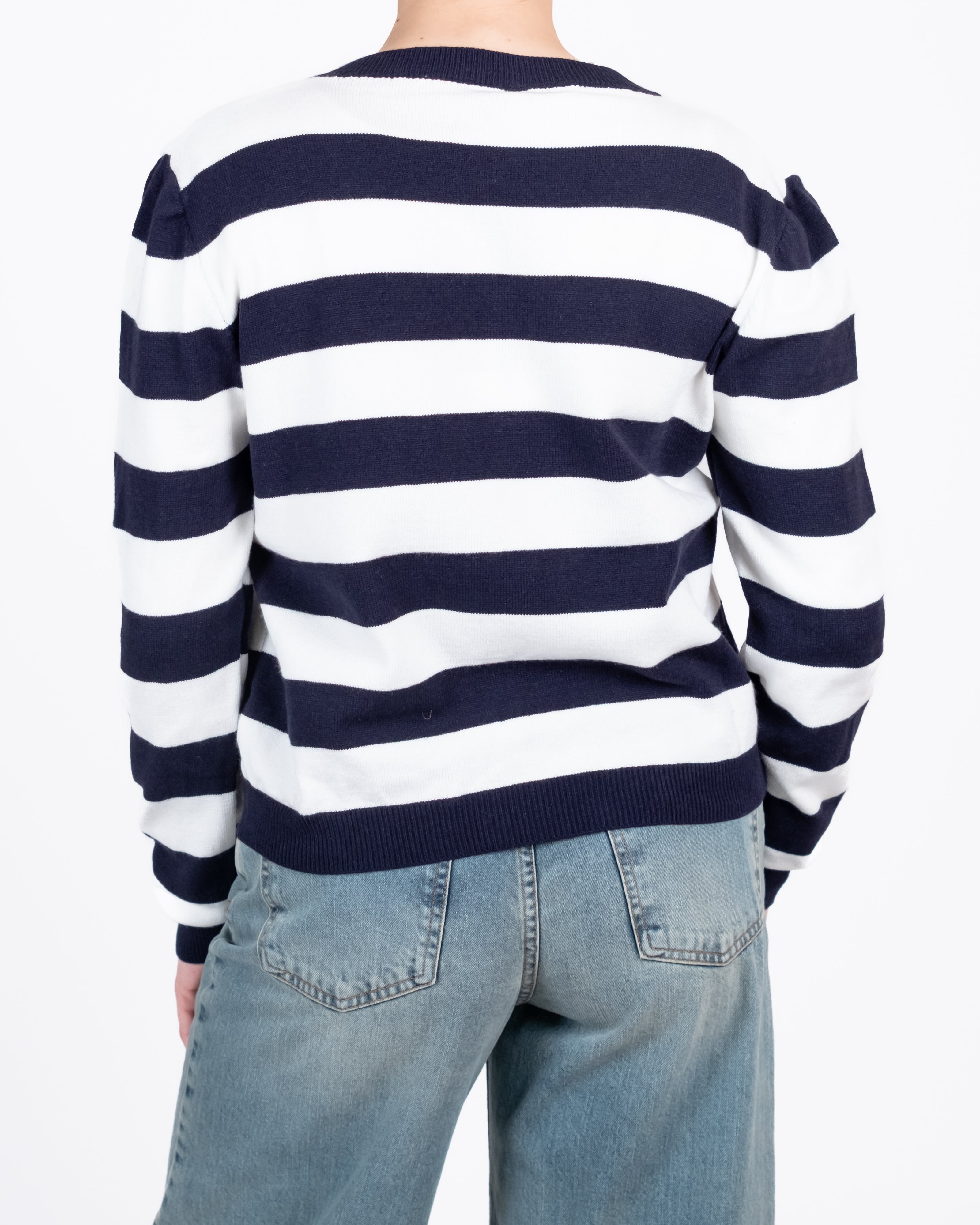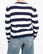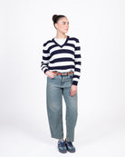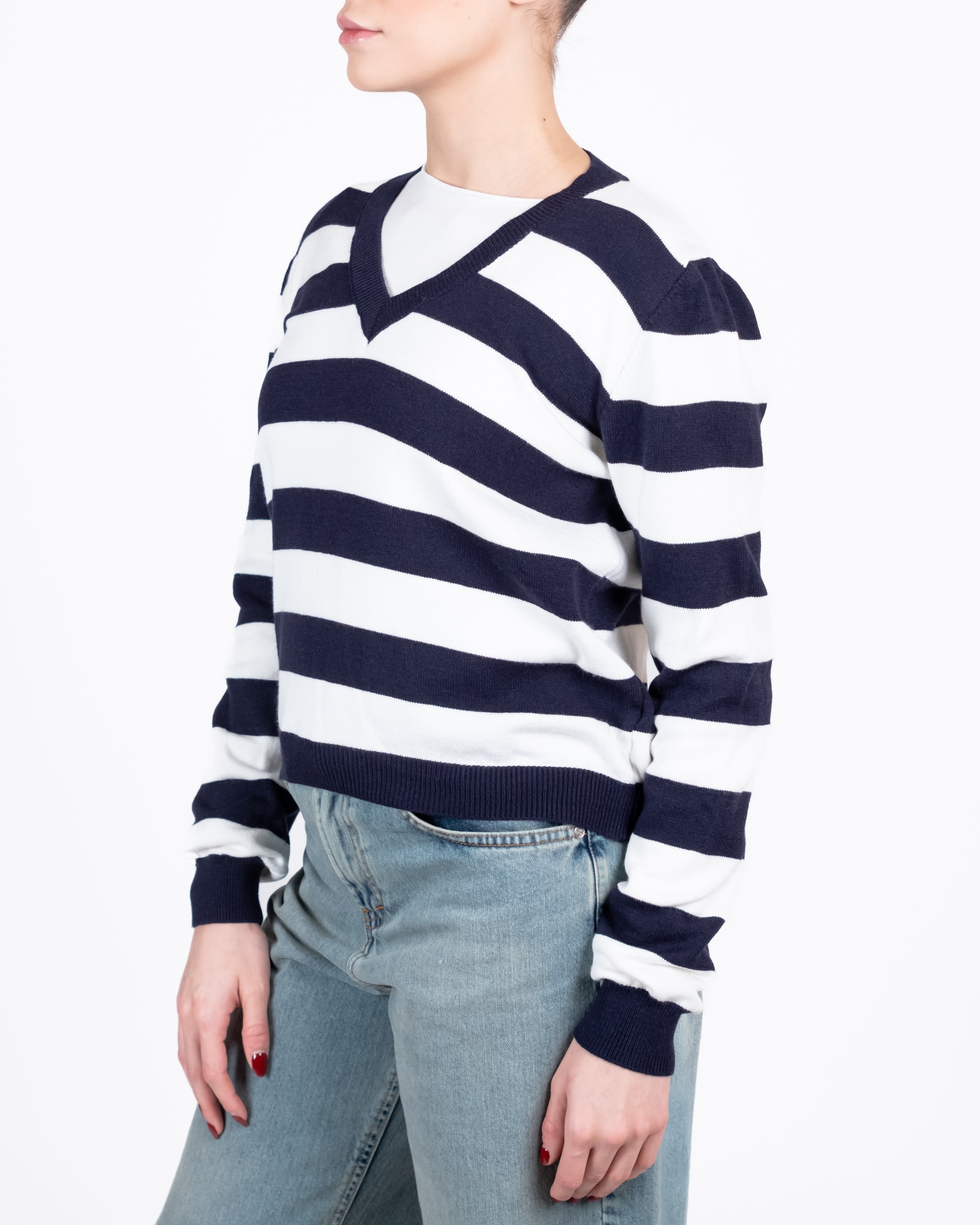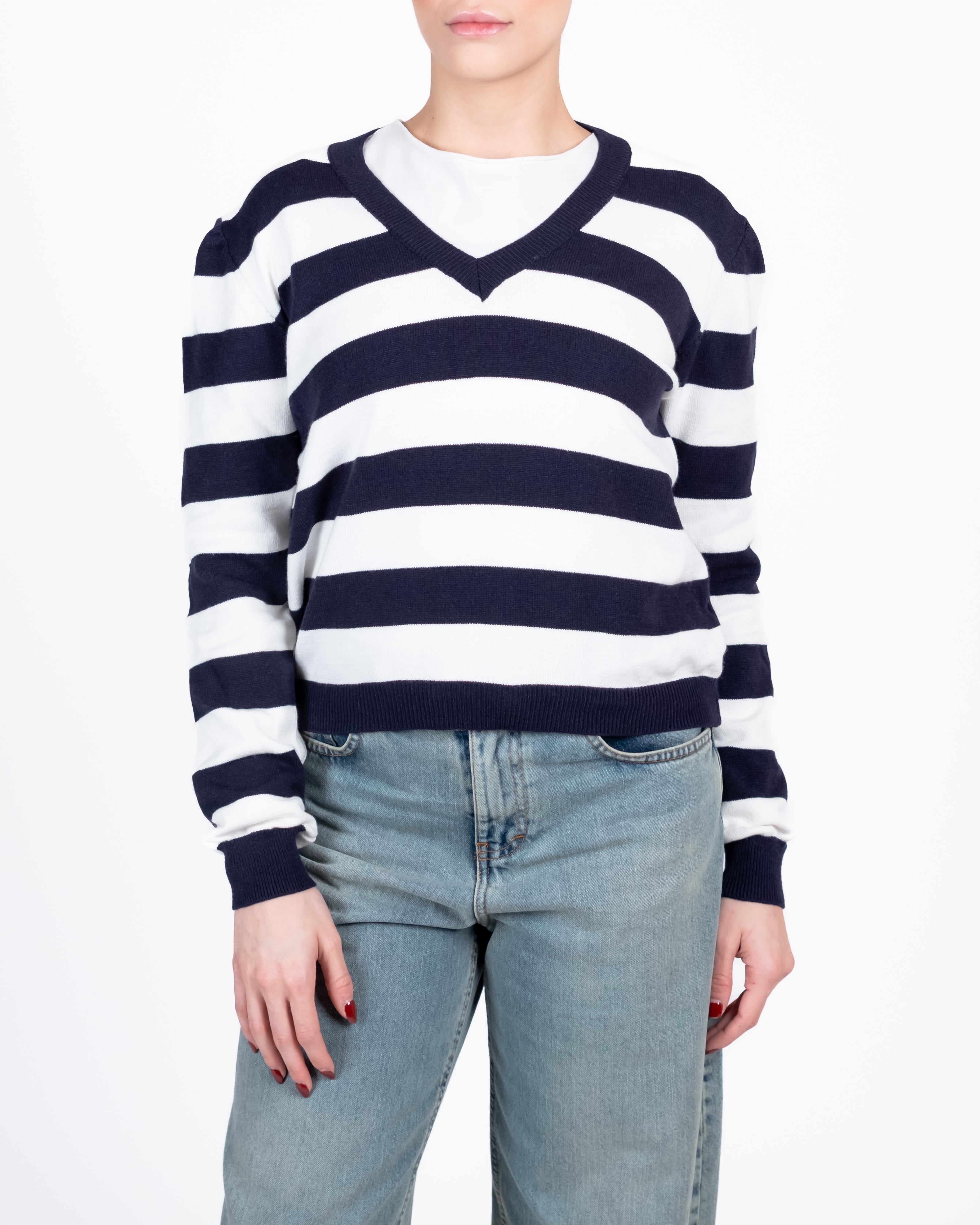 Tensione In Maglia Righe Collo V - BLU/BIANCO