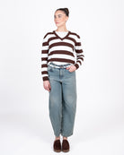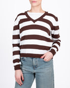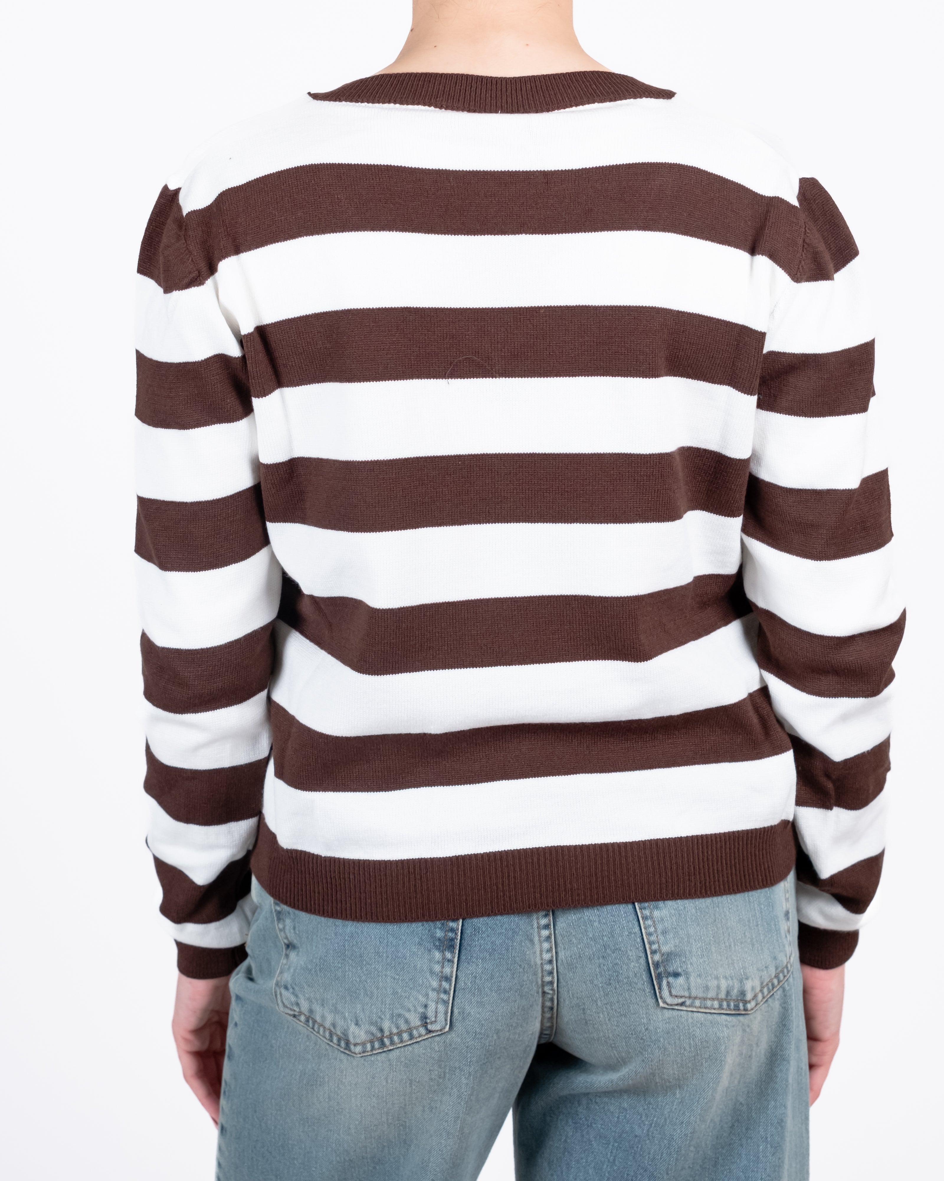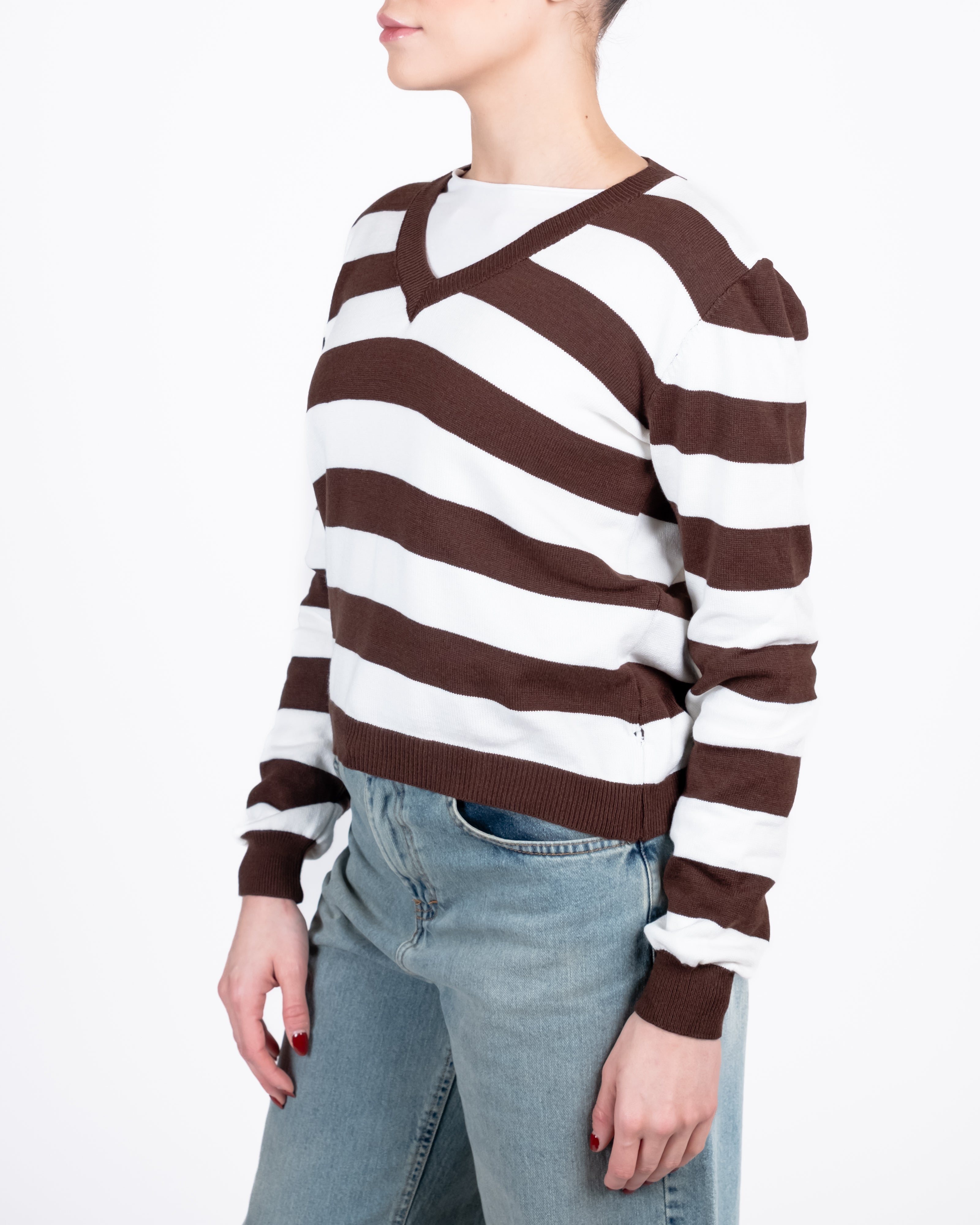 Tensione In Maglia Righe Collo V - MORO/BIANCO