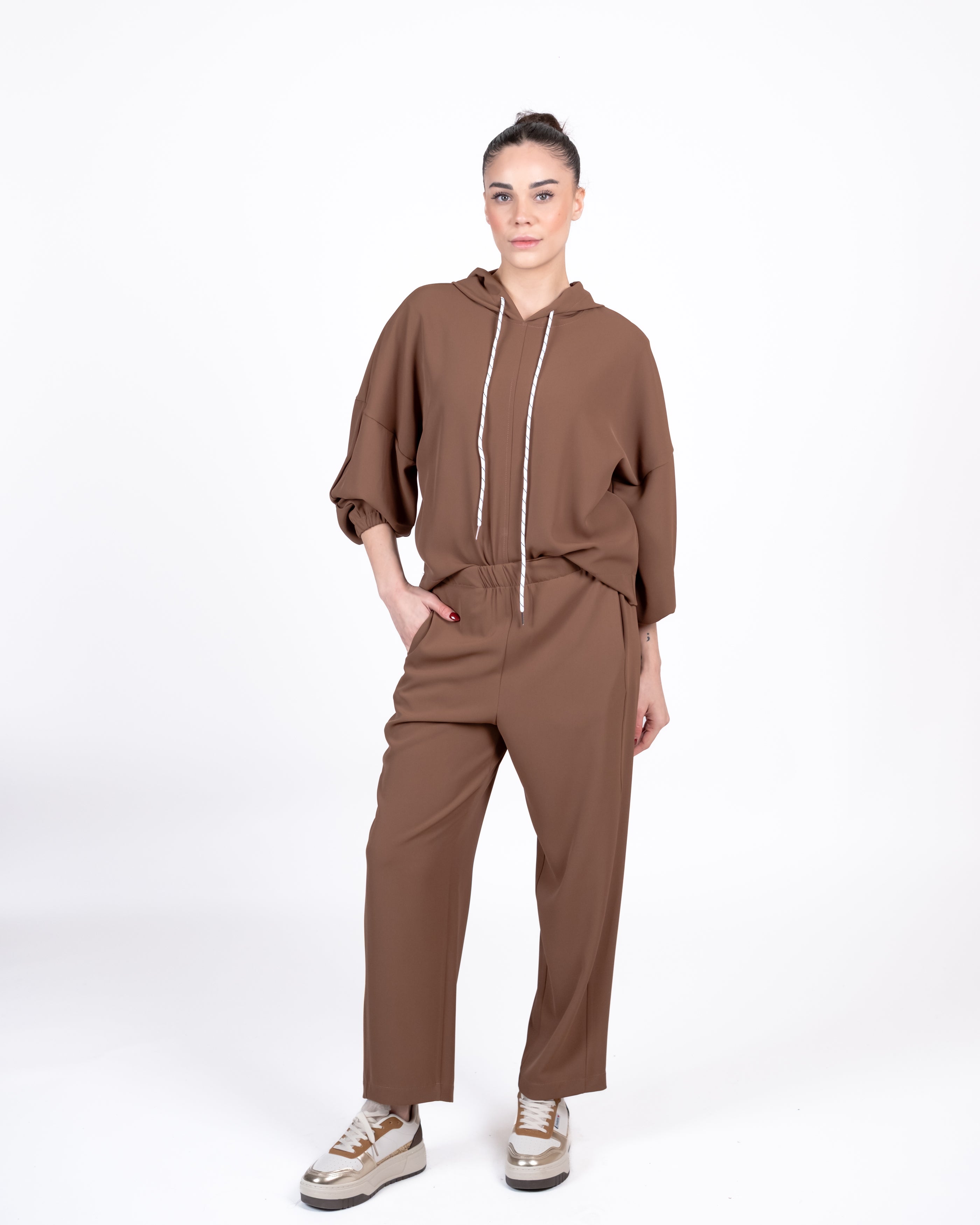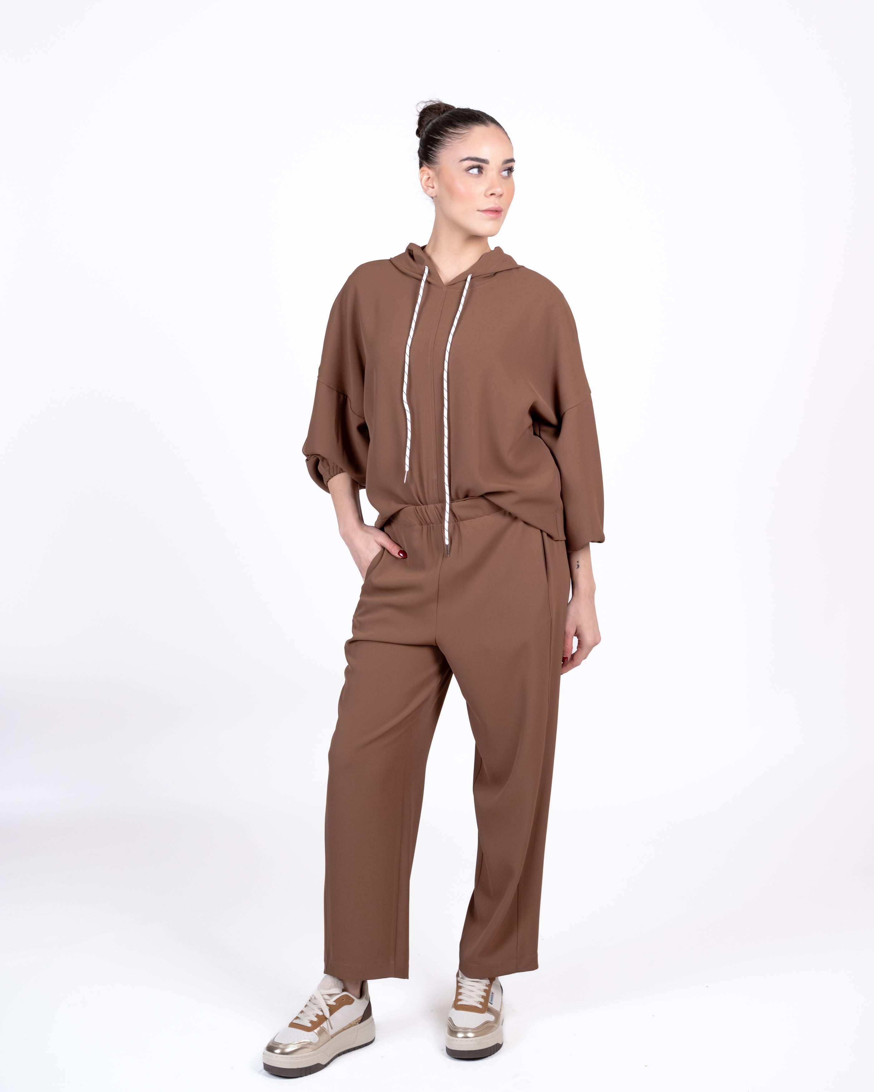 Susy Mix Completo Blusa Cappuccio - Tabacco