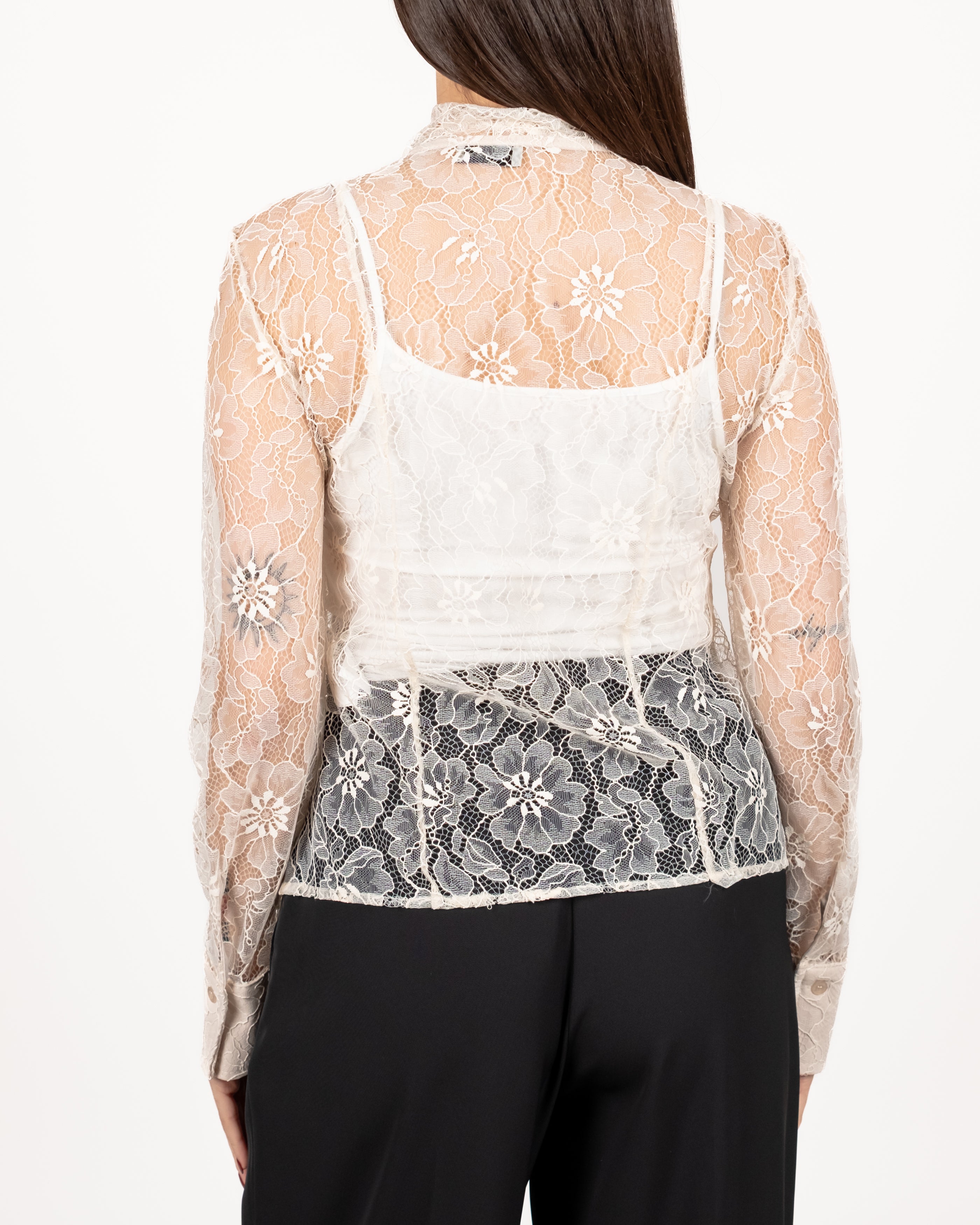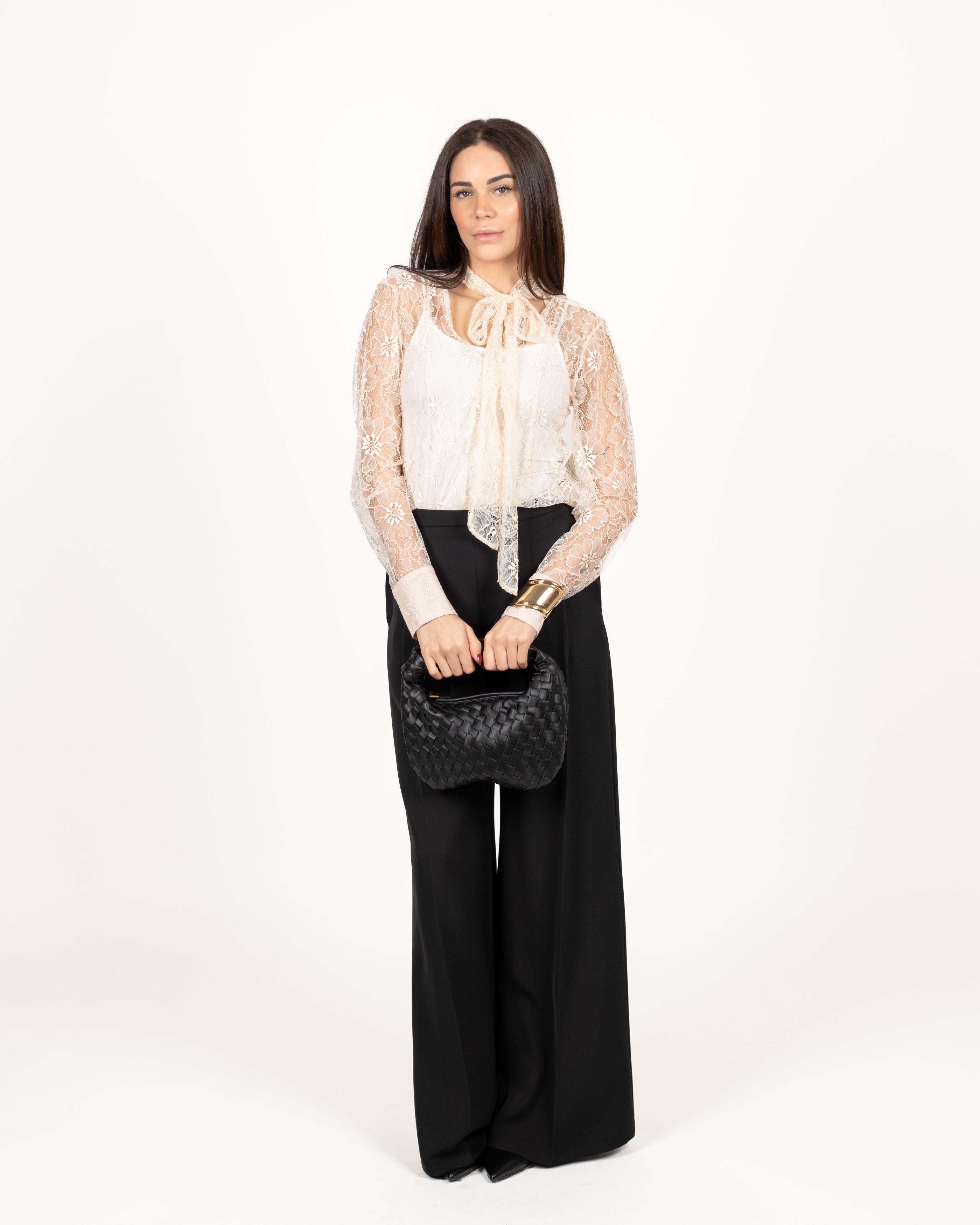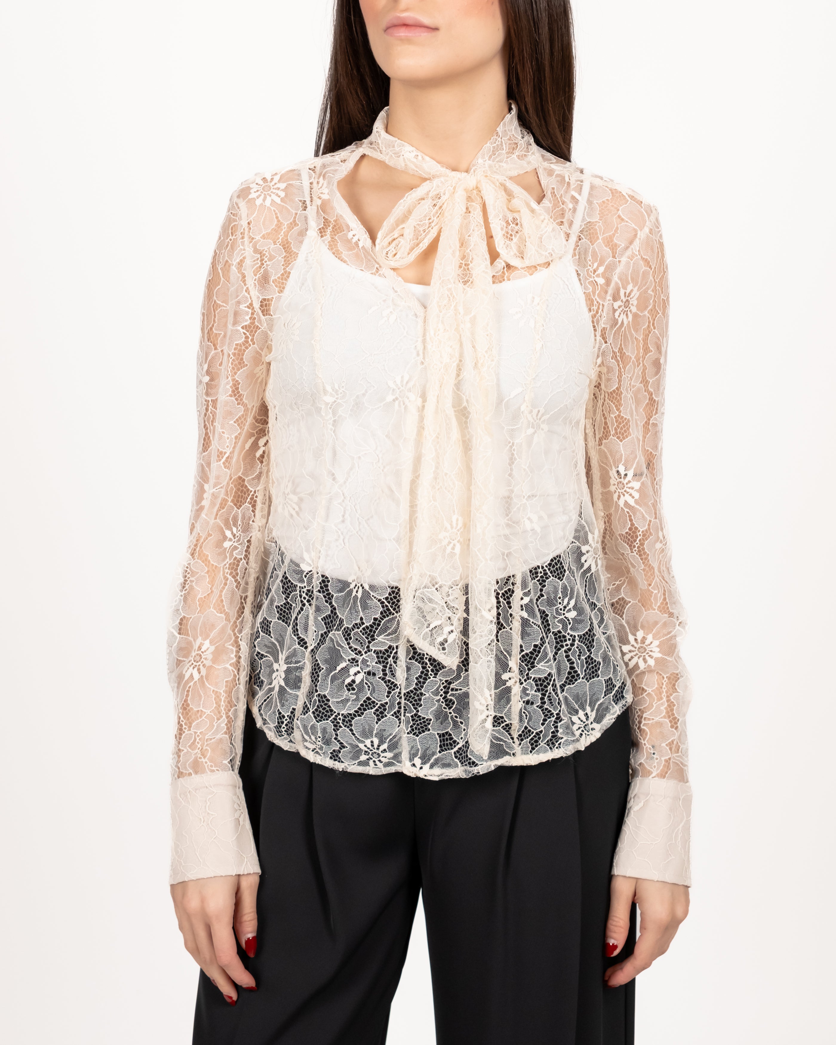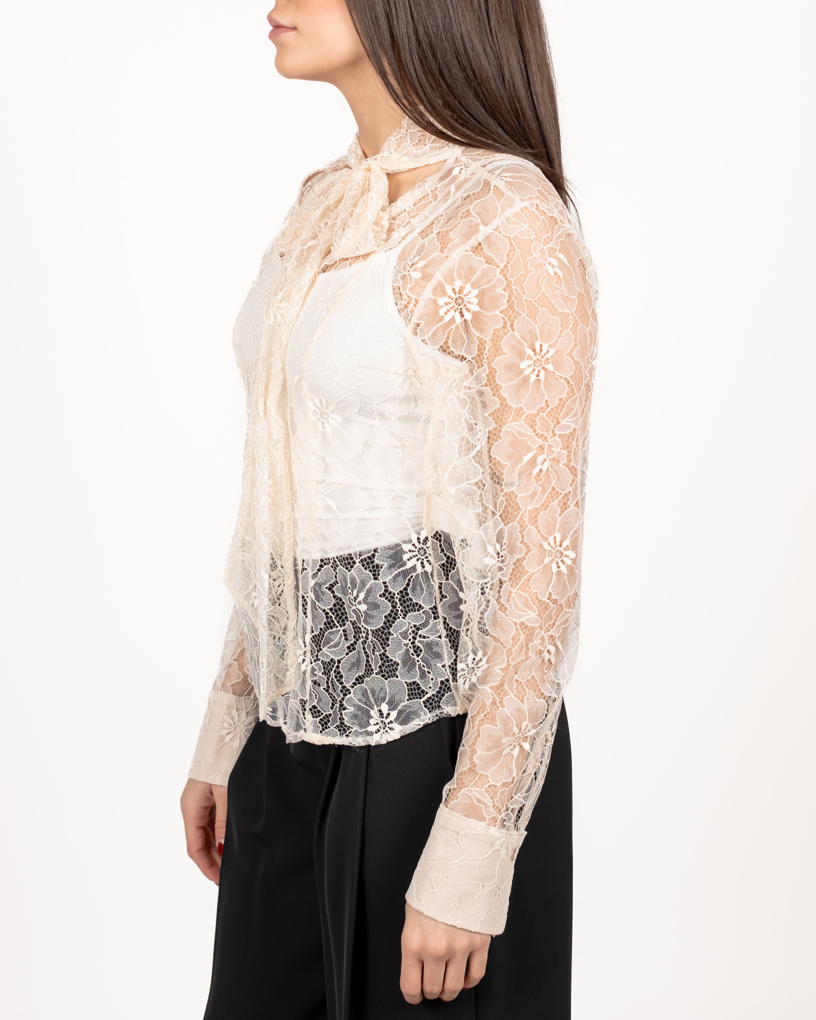 Blusa in pizzo con fiocco.