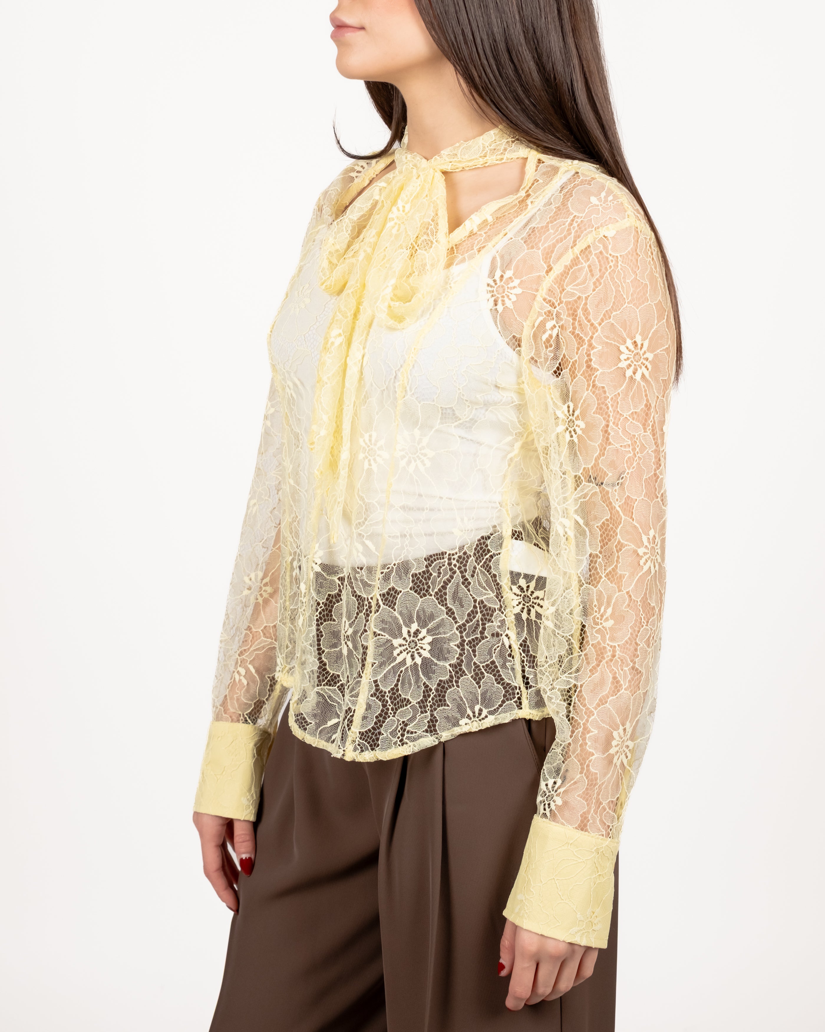 Blusa in pizzo con fiocco.