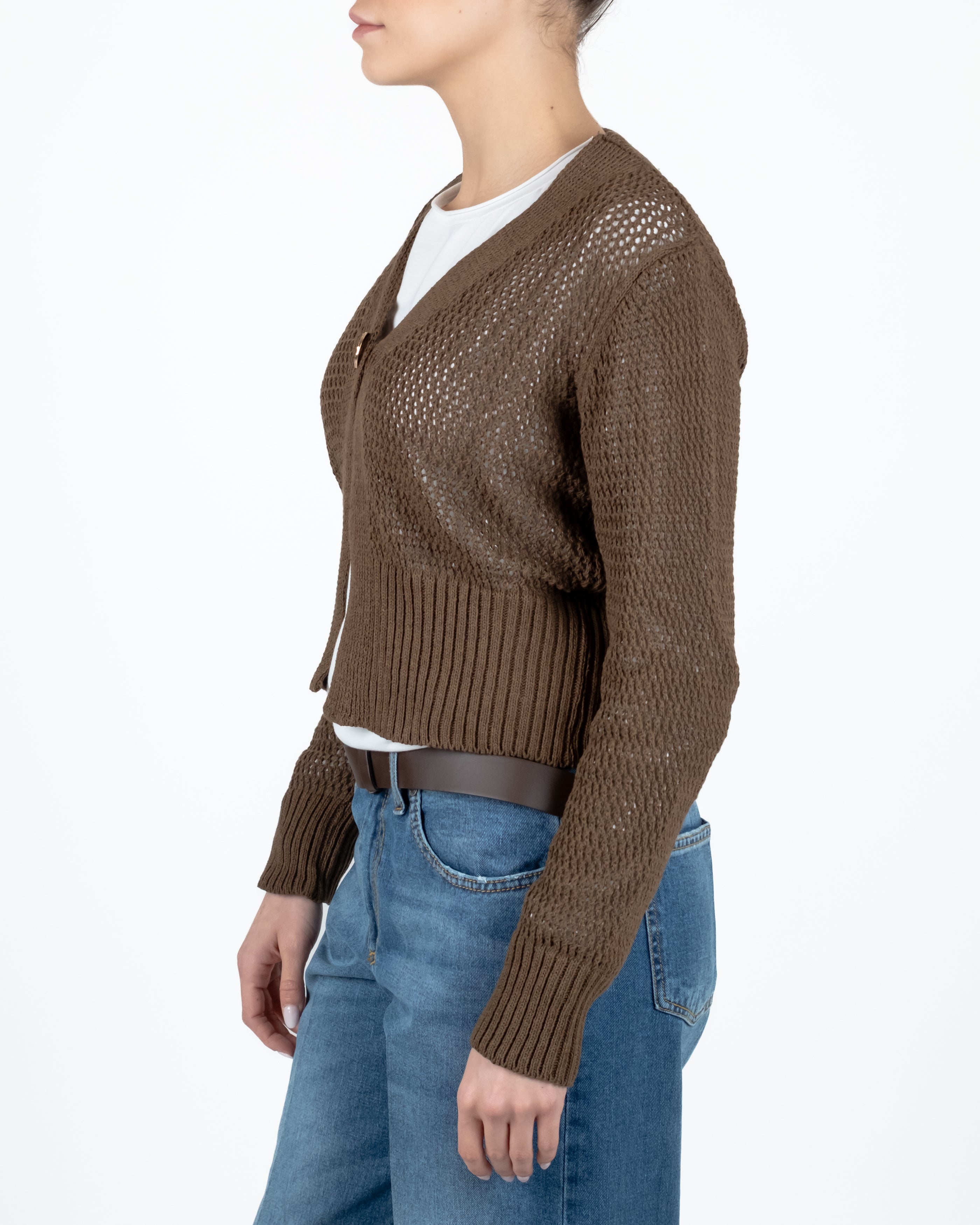 Cardigan drop traforato un bottone.