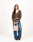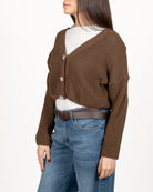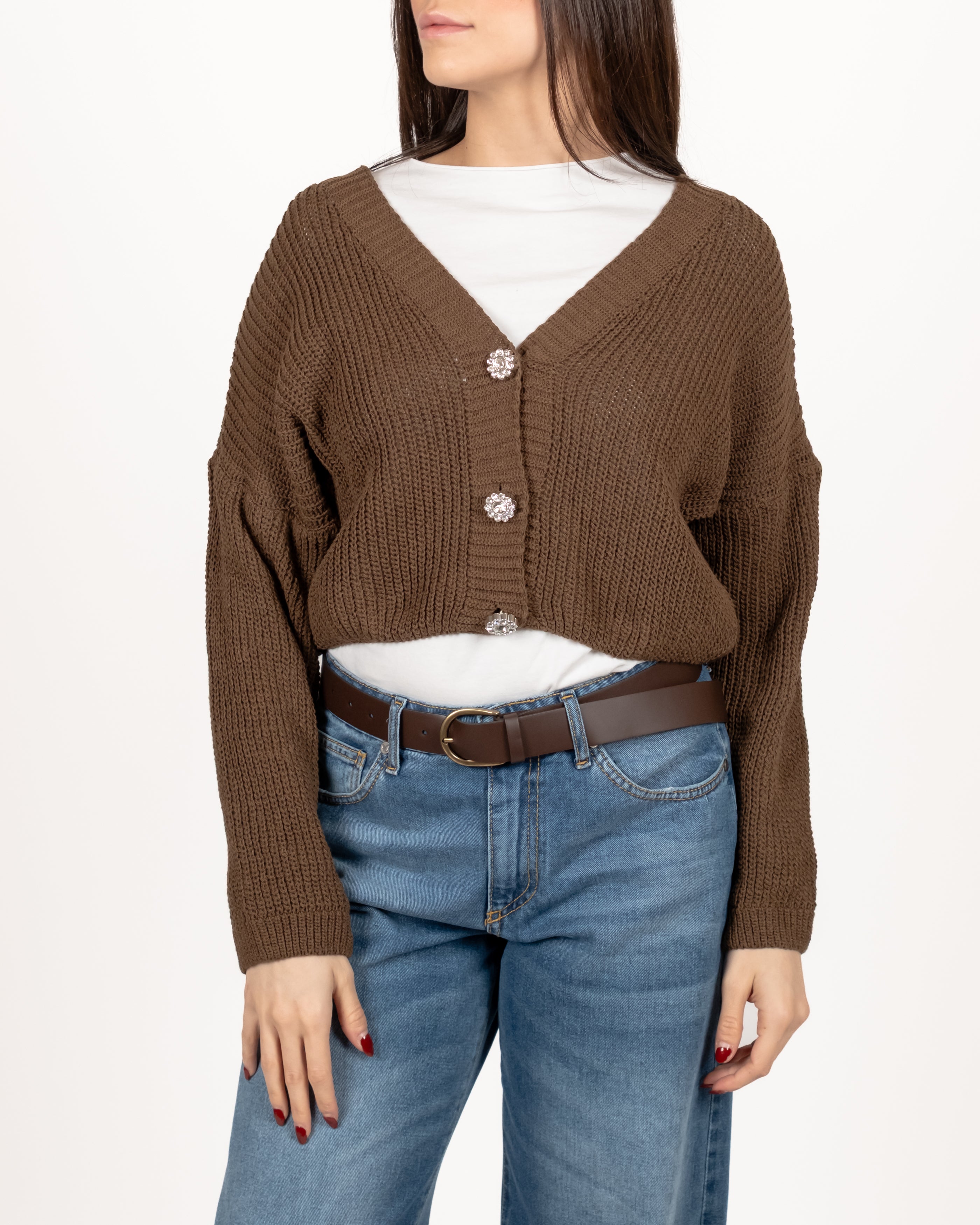 Cardigan drop a coste inglesi con bottoni gioiello.