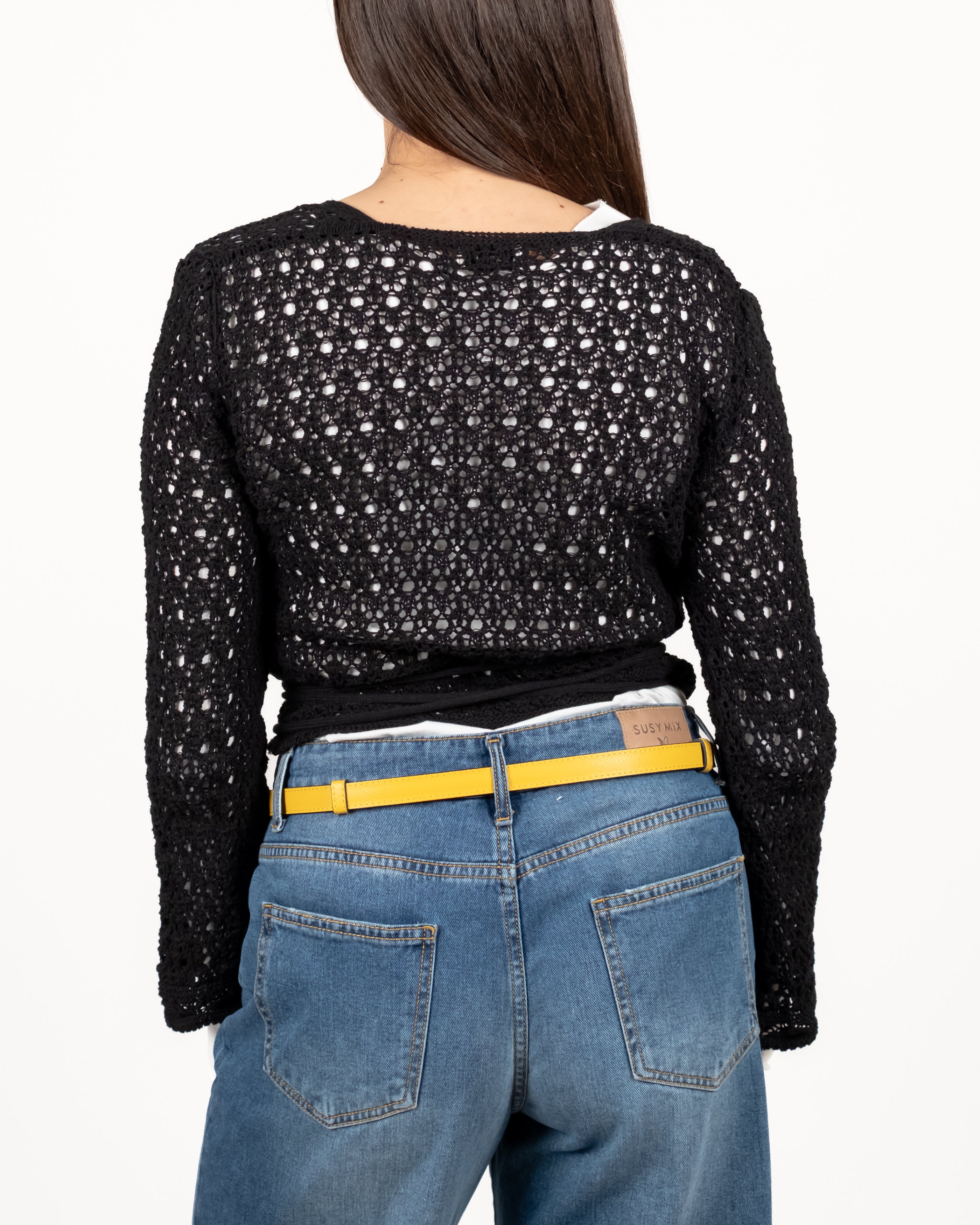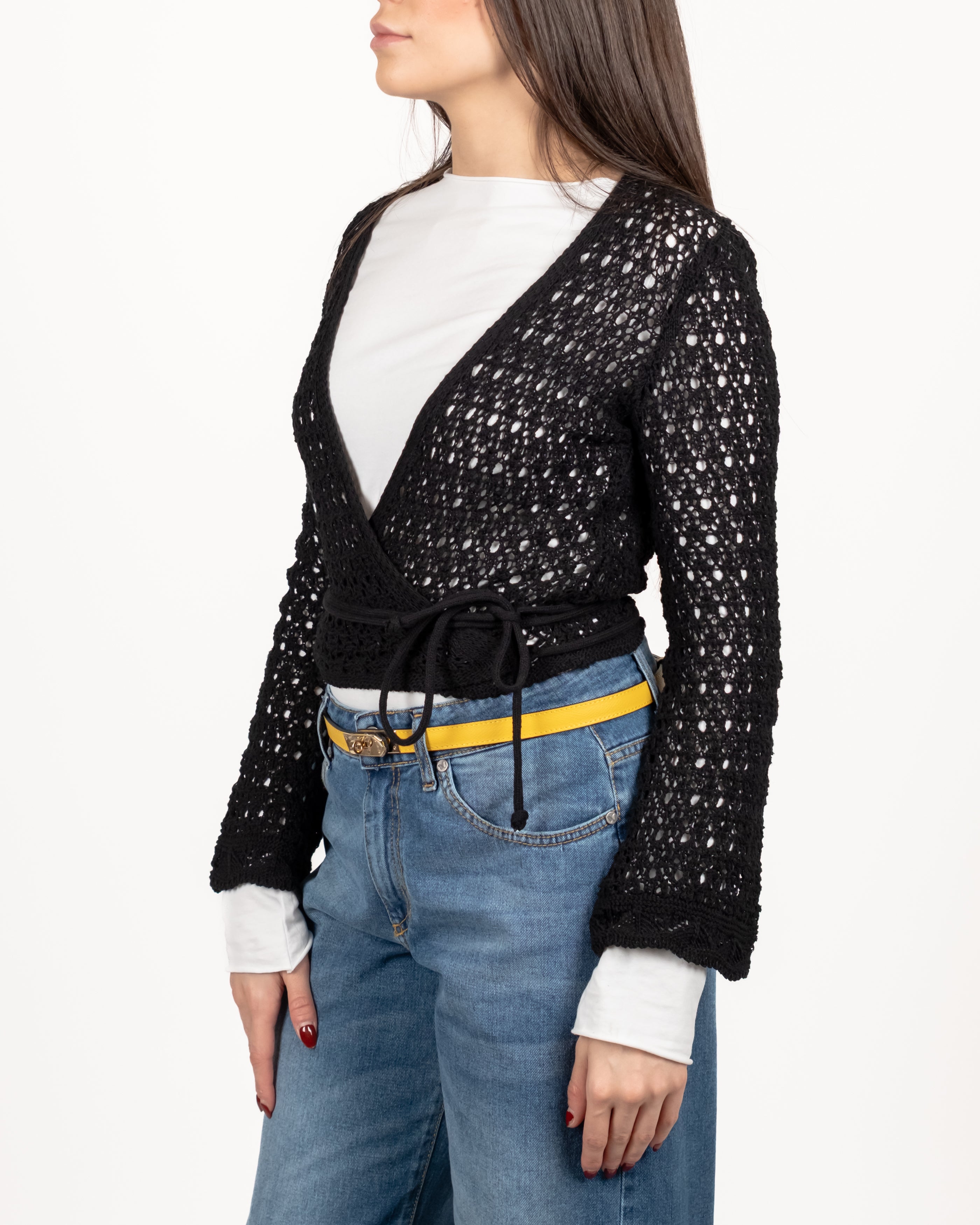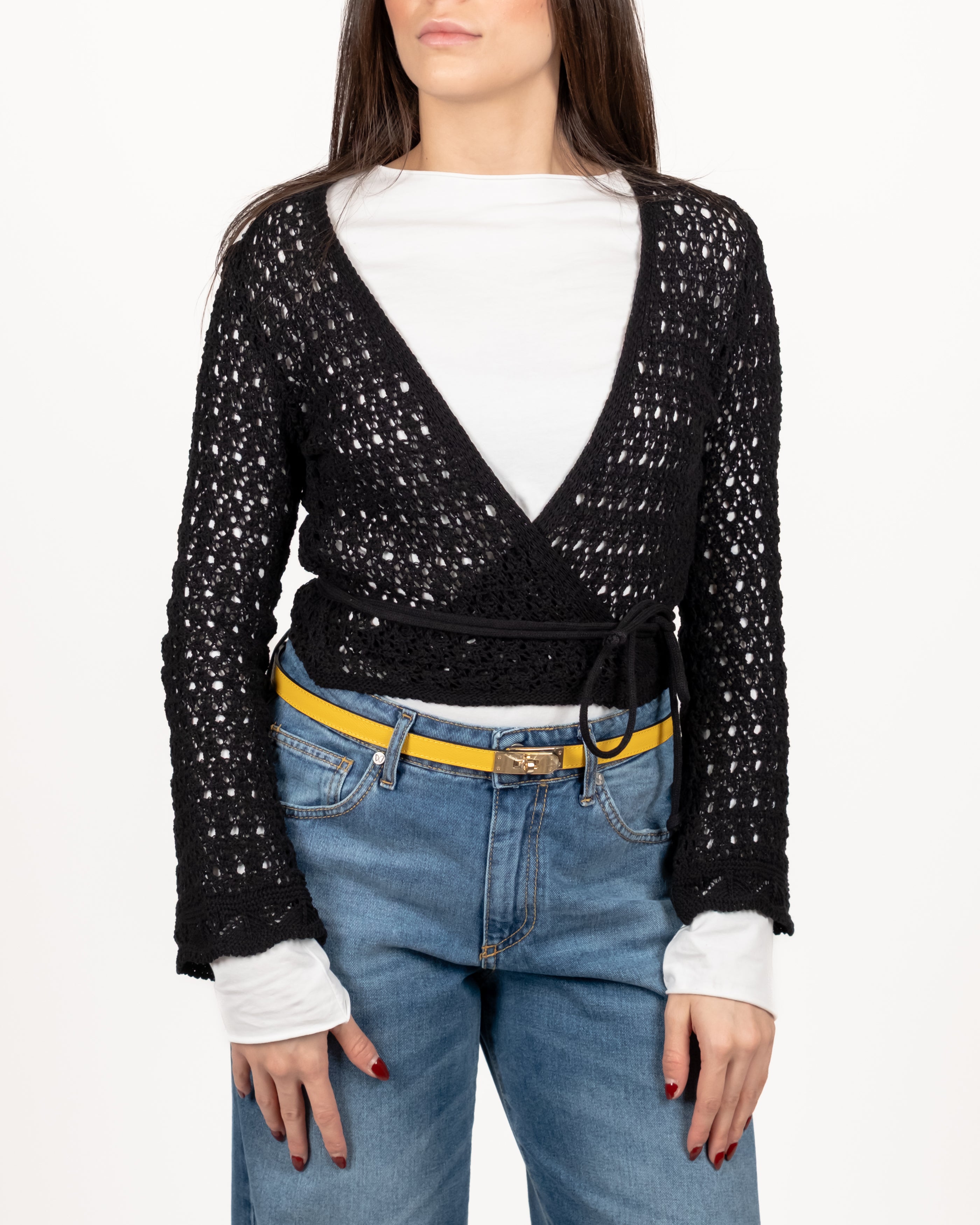 Susy Mix Cardigan Incrociato Traforato - NERO