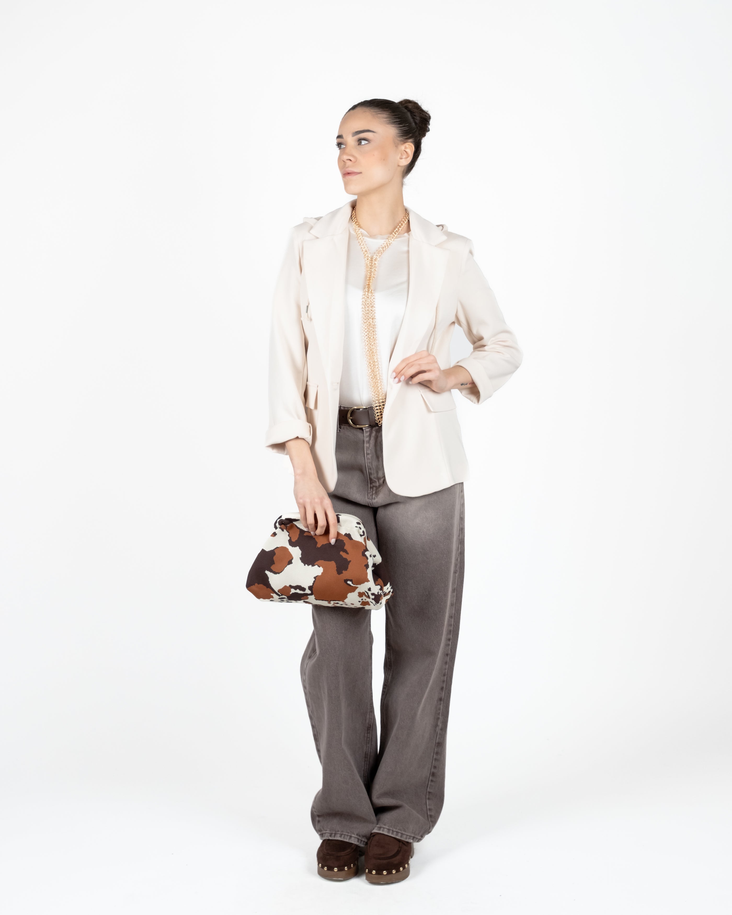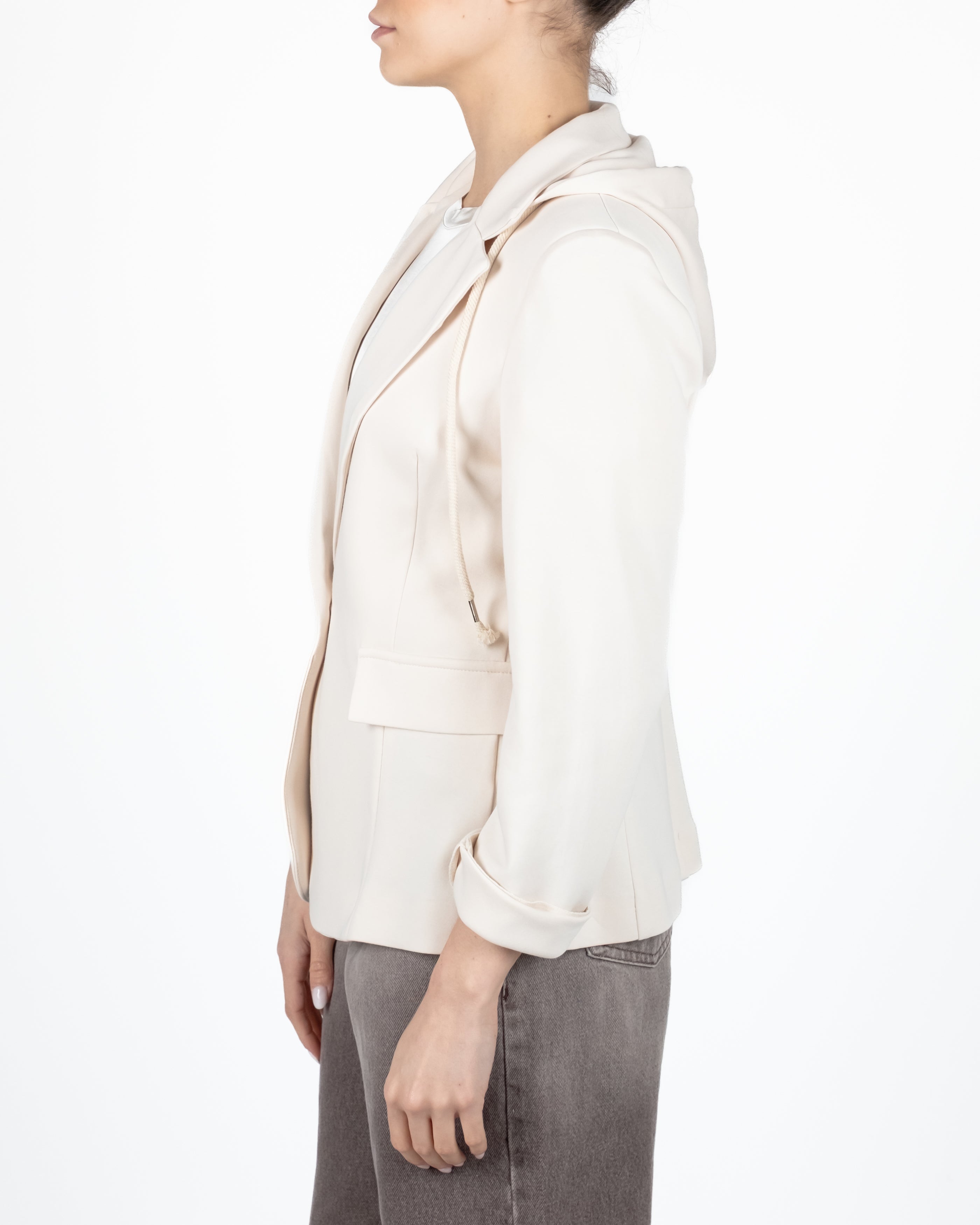 Tensione In Giacca Felpata Monopetto c/ Cappuccio - BEIGE