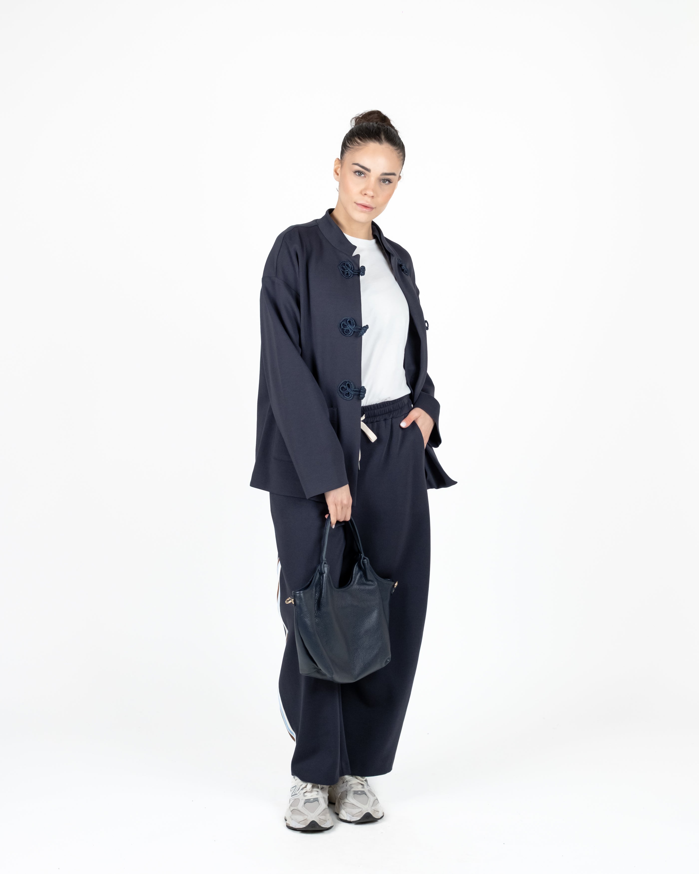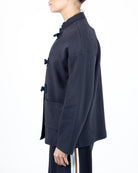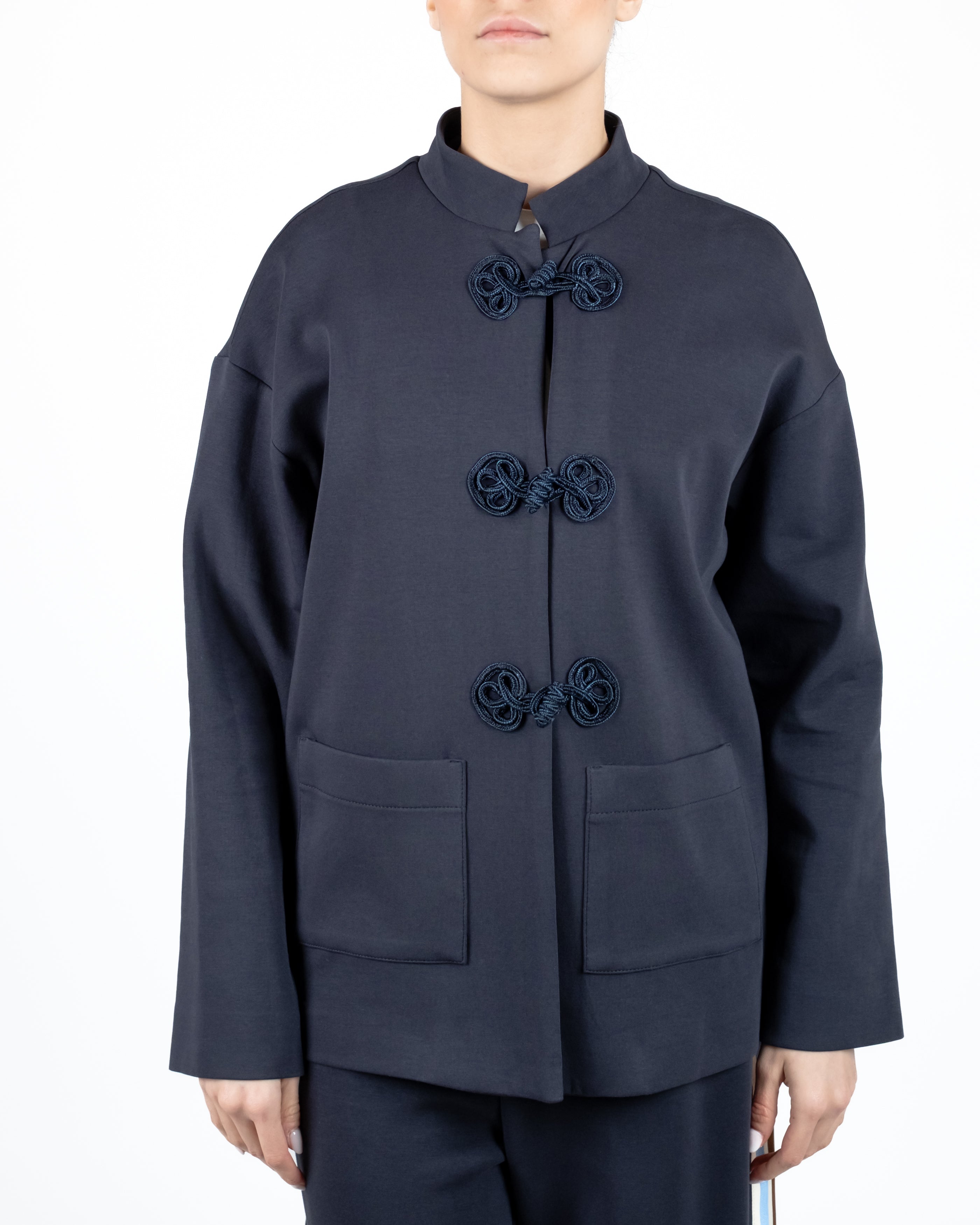 Giacca con chiusura alamari e tasche a toppa.
