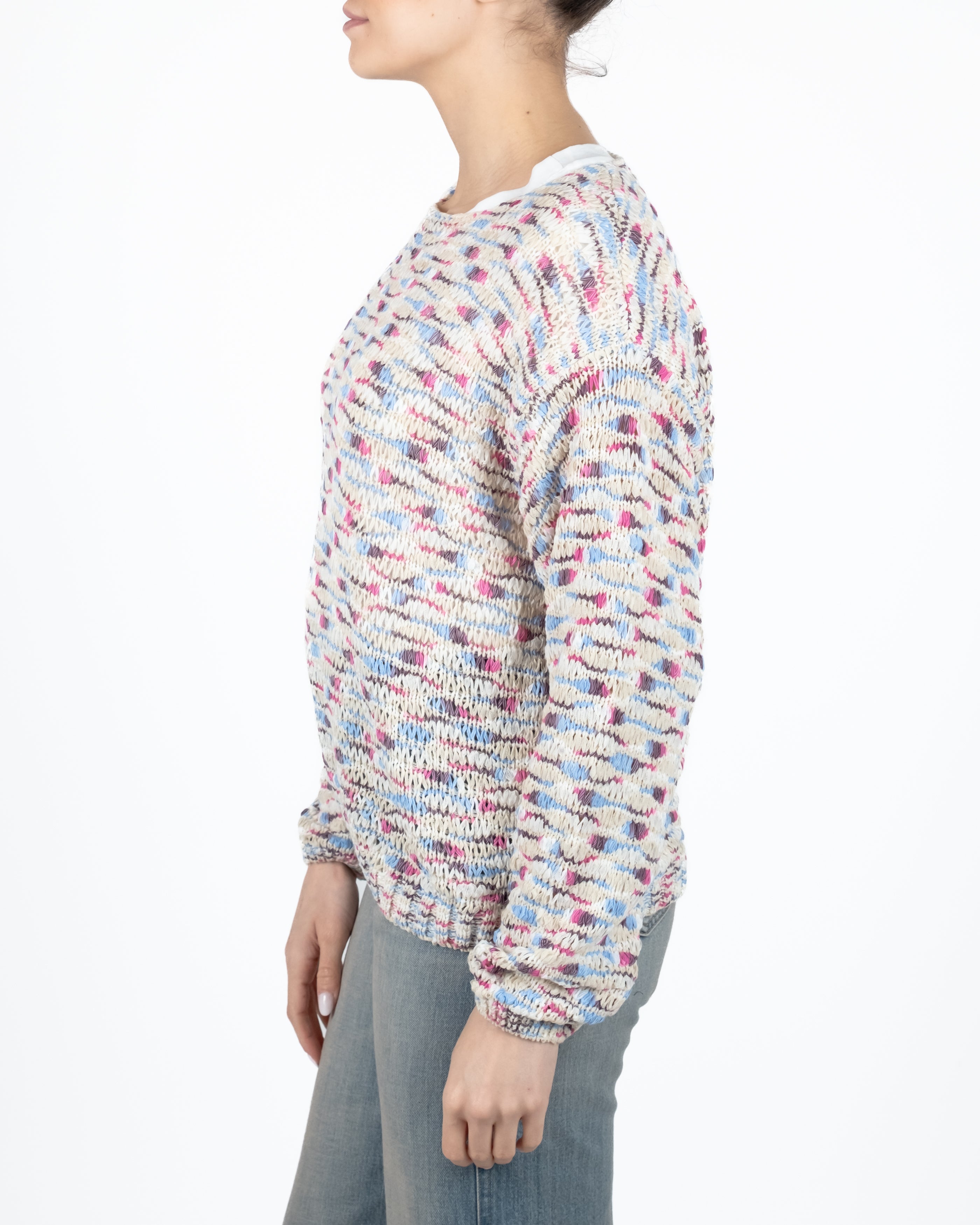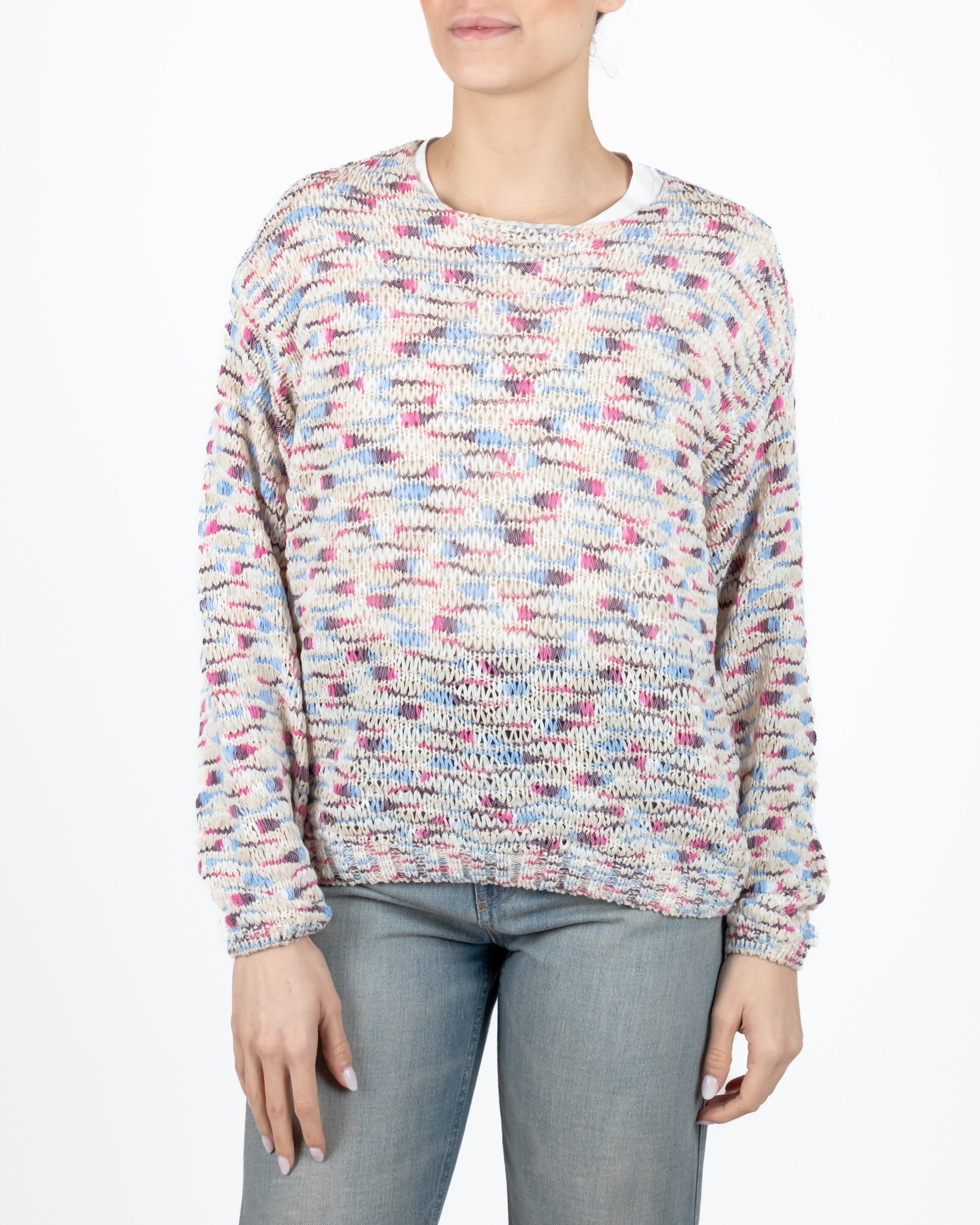 Maglia in fettuccia multicolor collo giro.