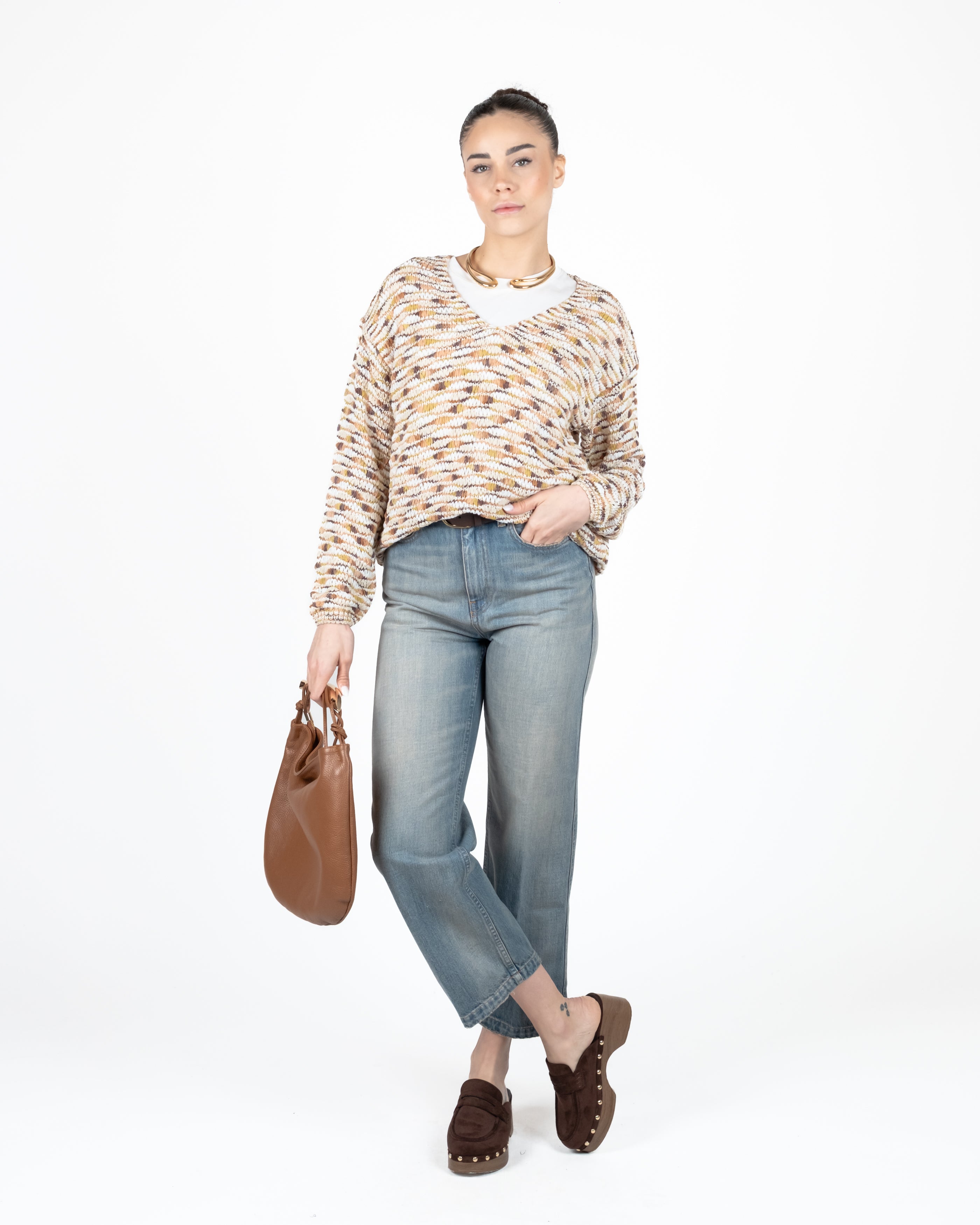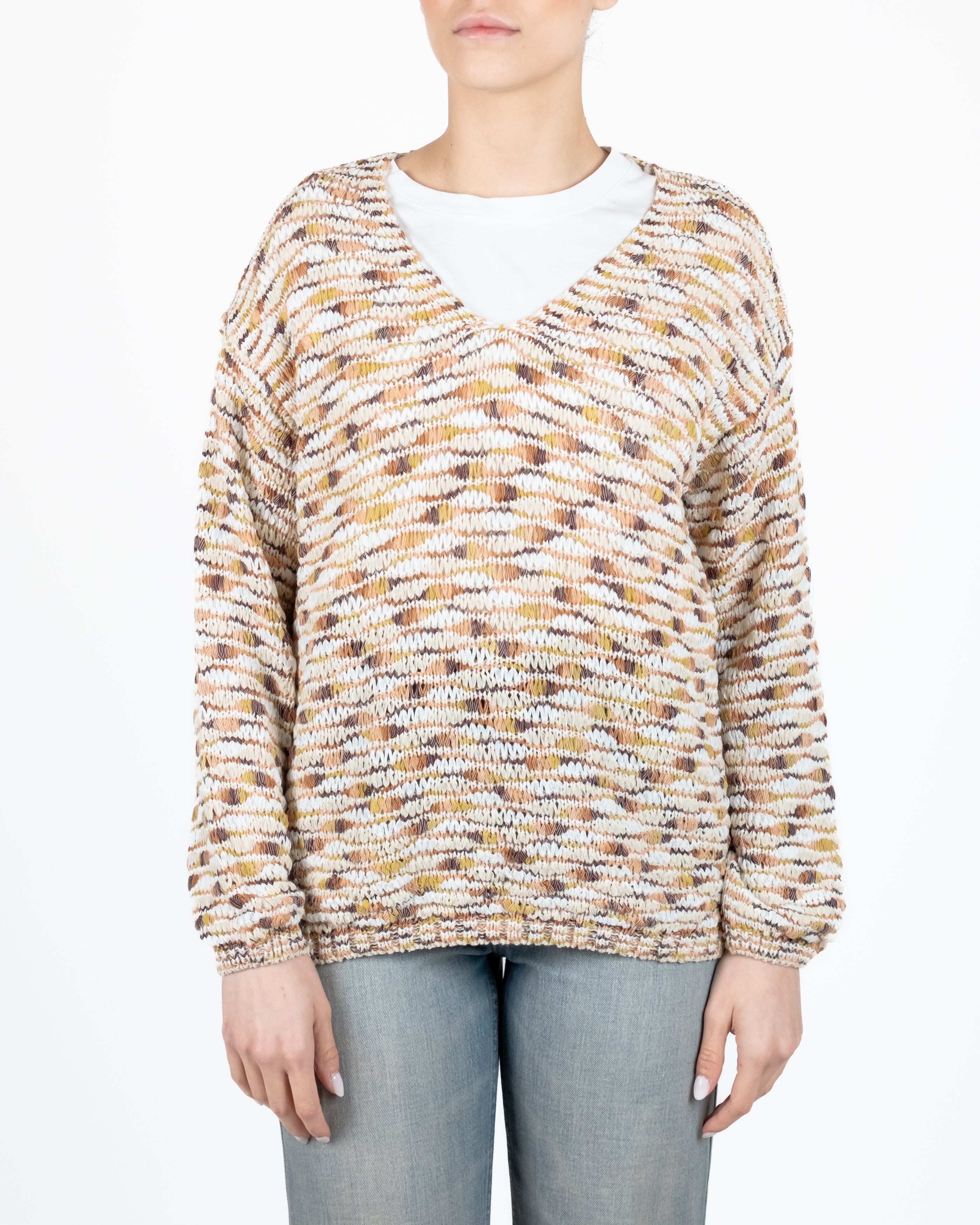 Via Vai Maglia Collo V Multicolor - Moro/Corda
